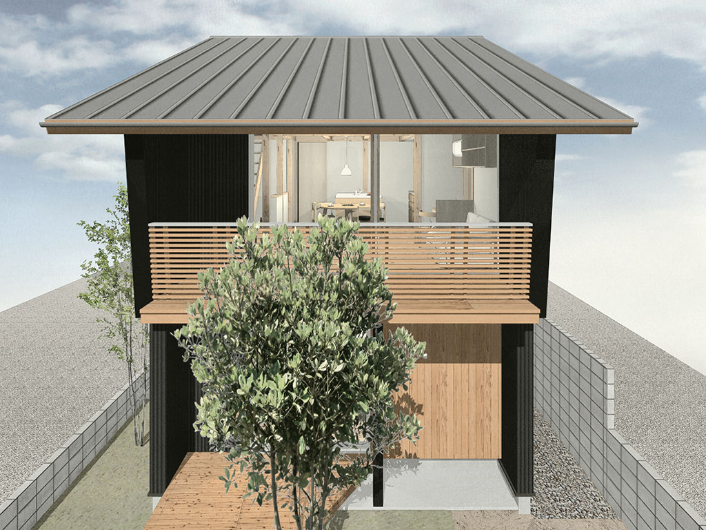 แบบบ้านทรงญี่ปุ่น แบบที่ 6 เป็นอีกหนึ่งแบบบ้านที่มาพร้อมหลังคาทรงจั่วที่สามารถระบายความร้อนได้เป็นอย่างดี ที่มีขนาดพื้นที่ใช้สอยเพียง 89.44 ตารางเมตร เหมาะสำหรับคู่รักที่อยู่ด้วยกัน 2 คน หรือวางแผนมีลูกน้อย 1-2 คนในอนาคต บ้านทาด้วยสีดำ ให้ความรู้สึกแปลกใหม่และโดดเด่นเพิ่มขึ้นด้วย