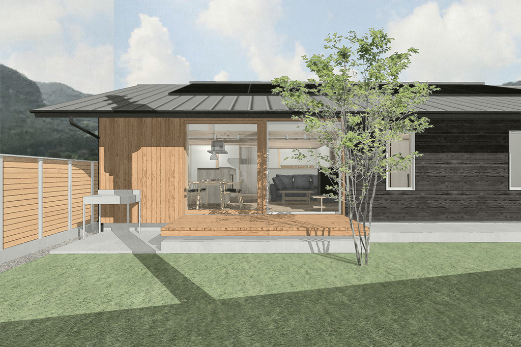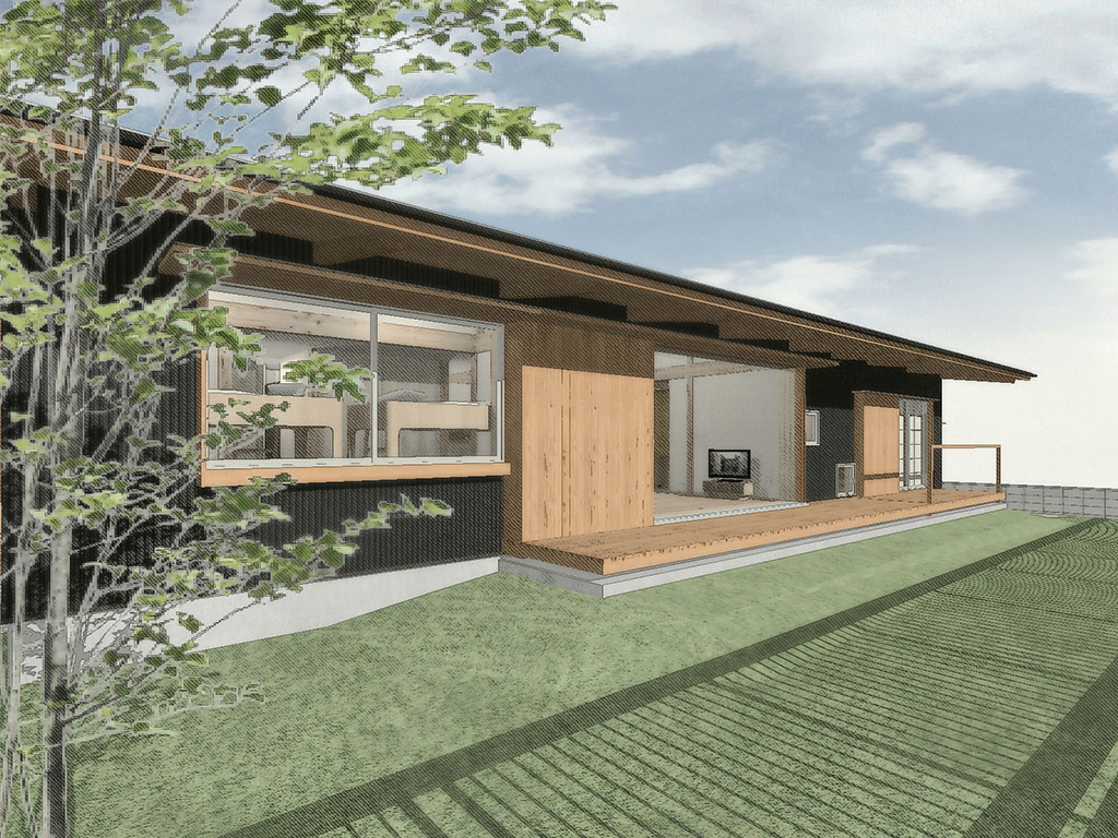 แบบบ้านทรงญี่ปุ่น แบบที่ 10 ปิดท้ายด้วยบ้านทรงญี่ปุ่นที่โดดเด่นด้วยสวนขนาดใหญ่ พร้อมชานหน้าบ้าน ซึ่งเหมาะสำหรับครอบครัวที่ชอบทำกิจกรรมนอกบ้านด้วยกัน ไม่ว่าจะเป็นการปลูกต้นไม้ ตั้งแคมป์เล็ก ๆ โดยตัวบ้านมีขนาดพื้นที่ใช้สอยอยู่ที่ 104.34 ตร.ม. ค่ะ