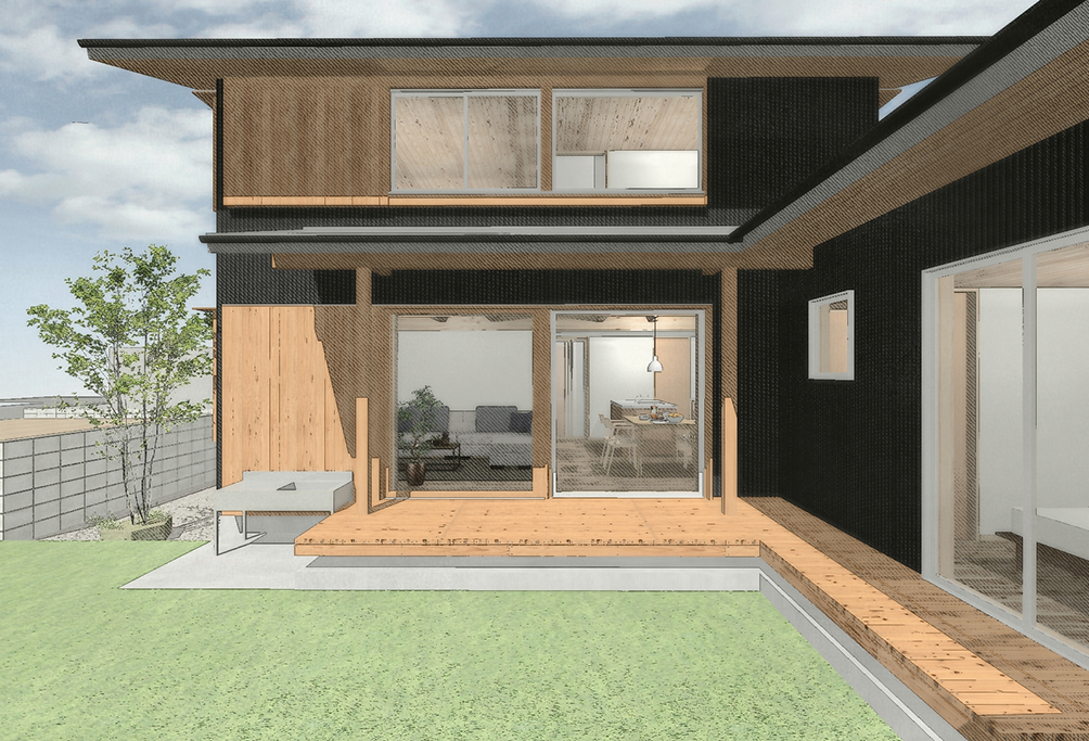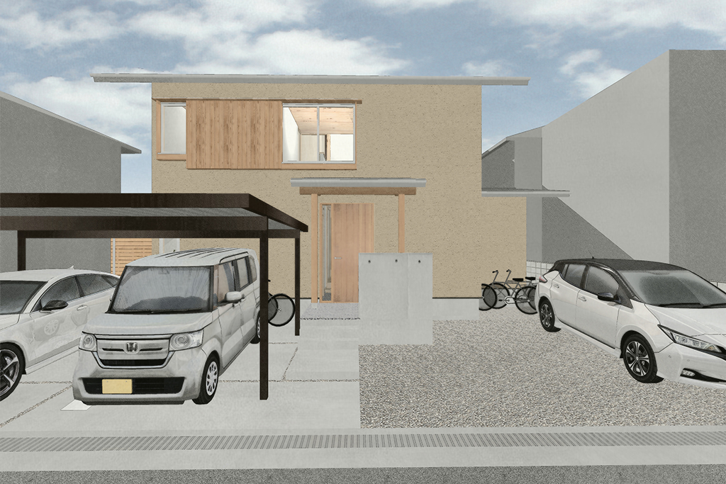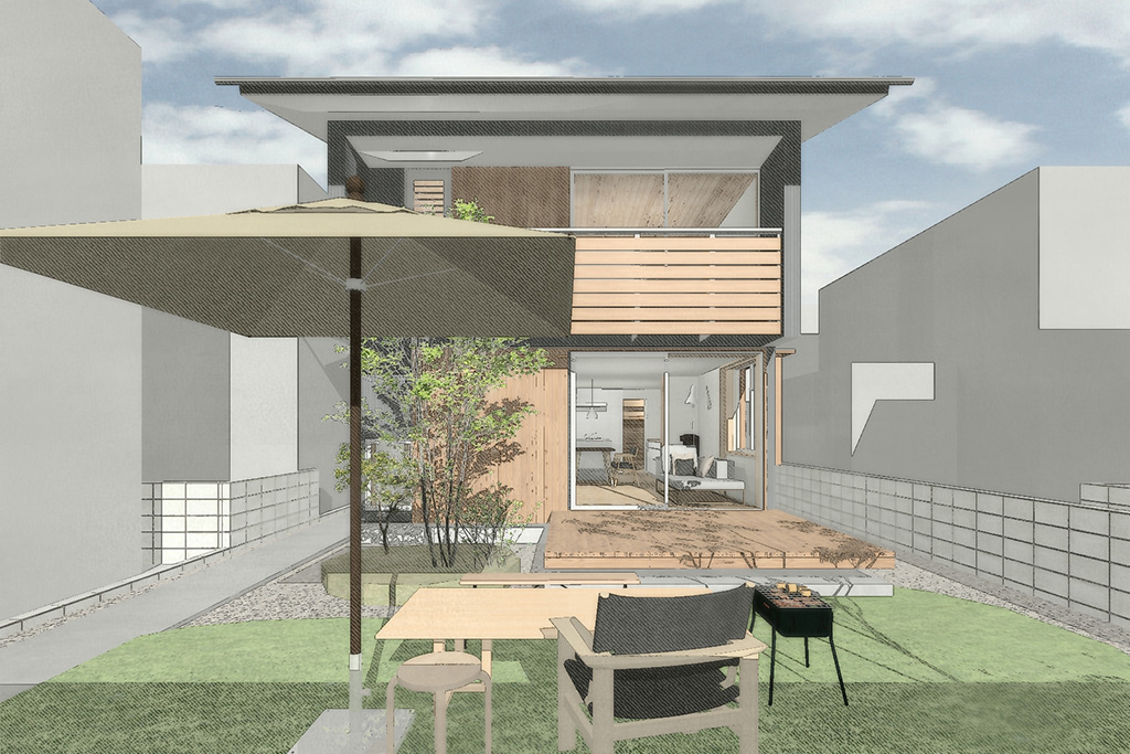 แบบบ้านทรงญี่ปุ่น แบบที่ 1 สำหรับแบบแรกเป็นบ้านที่โดดเด่นด้วยรูปทรงตัว L ซึ่งโอบล้อมสวนในบ้าน ดังนั้นนอกจากบ้านจะมีความเป็นส่วนตัวแล้ว ห้องต่าง ๆ ภายในบ้านจะยังได้รับวิวพื้นที่สีเขียวจากสนามหญ้าในบ้านได้แทบทุกห้องอีกด้วย โดยมีขนาดพื้นที่ใช้สอยอยู่ที่ 108.47 ตร.ม.