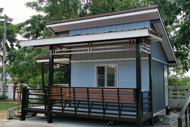 เหมาะทั้งสำหรับการอยู่อาศัยและการทำเป็นร้านค้าขนาดย่อม ๆ เนื่องจากมีพื้นที่นั่งบริเวณระเบียง และยังมีชายคาที่ช่วยบังแดดบังฝนได้เป็นอย่างดี ในงบประมาณเพียง 150,000 บาท