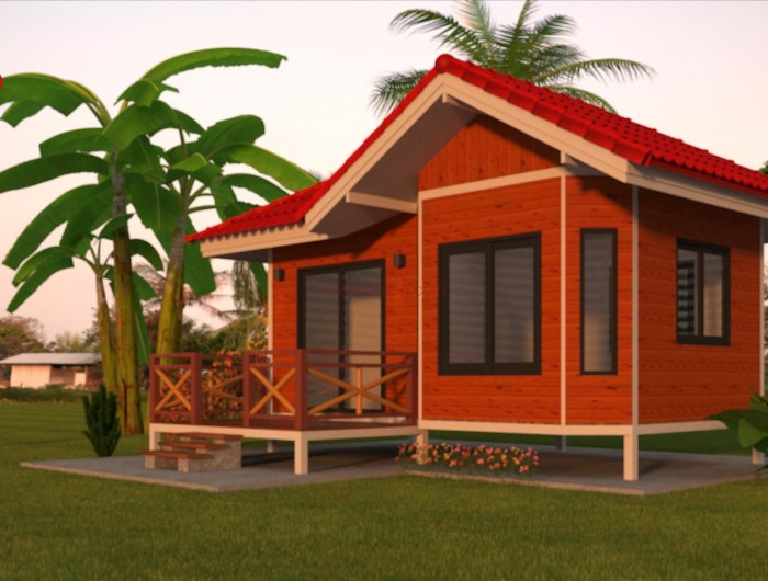 เอาใจคนชอบบ้านสไตล์ไทยล้านนา ด้วยงบราคาประหยัดเพียง 150,000 บาท ที่มีครบทั้งหลังคาทรงจั่ว ระเบียงและชายคาสำหรับพักผ่อน โดยมีพื้นที่ใช้สอยถึง 36 ตารางเมตร สามารถจัดสรรพื้นที่ภายในบ้านให้เป็นทั้งส่วนครัว ห้องนอน ห้องนั่งเล่นได้อย่างสบาย ๆ