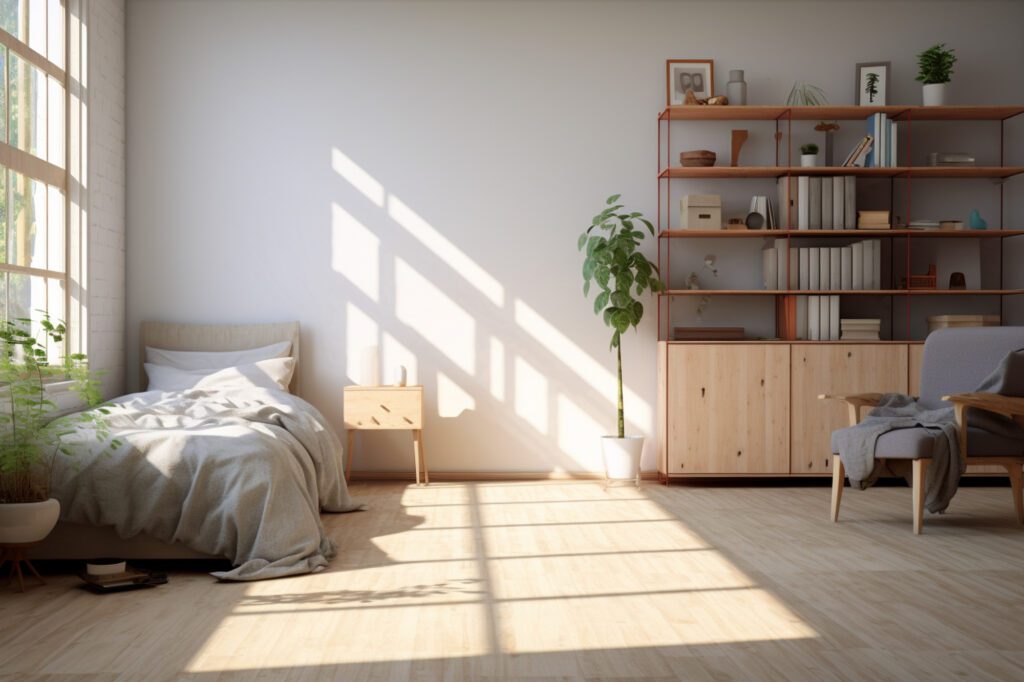 การจัดวางเฟอร์นิเจอร์ที่เป็นระเบียบช่วยสร้างความรู้สึกสงบและผ่อนคลาย พื้นที่ว่างรอบเตียงนอนควรกว้างขวาง หลีกเลี่ยงการวางเฟอร์นิเจอร์มากเกินไป และคำนึงถึงการไหลเวียนของพื้นที่ภายในห้อง