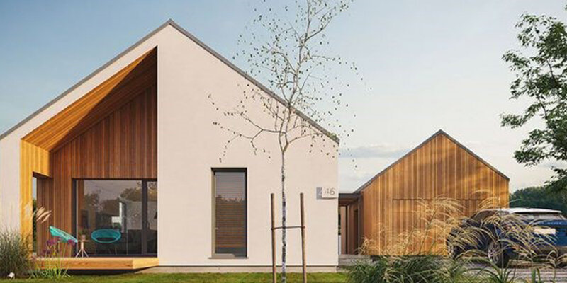 บ้านหน้าจั่วแบบบ้านสไตล์โมเดิร์นที่ให้อารมณ์ความเป็นญี่ปุ่นนิด ๆ เหมาะมากสำหรับคนที่อยากให้บ้านมีหน้าจั่วเพราะรู้สึกสบายใจในความเป็น ‘บ้าน’ แบบที่คุ้นเคย แต่ยังมีความโมเดิร์นของรูปทรง รวมกับการเลือกใช้สีของบ้านเป็นสีขาว เสริมด้วยกระจกเพื่อเพิ่มแสงและเพิ่มความธรรมชาติด้วยวัสดุไม้ แค่นี้ก็ให้ความรู้สึกอบอุ่น ฟีลญี่ปุ่นขึ้นมาทันที