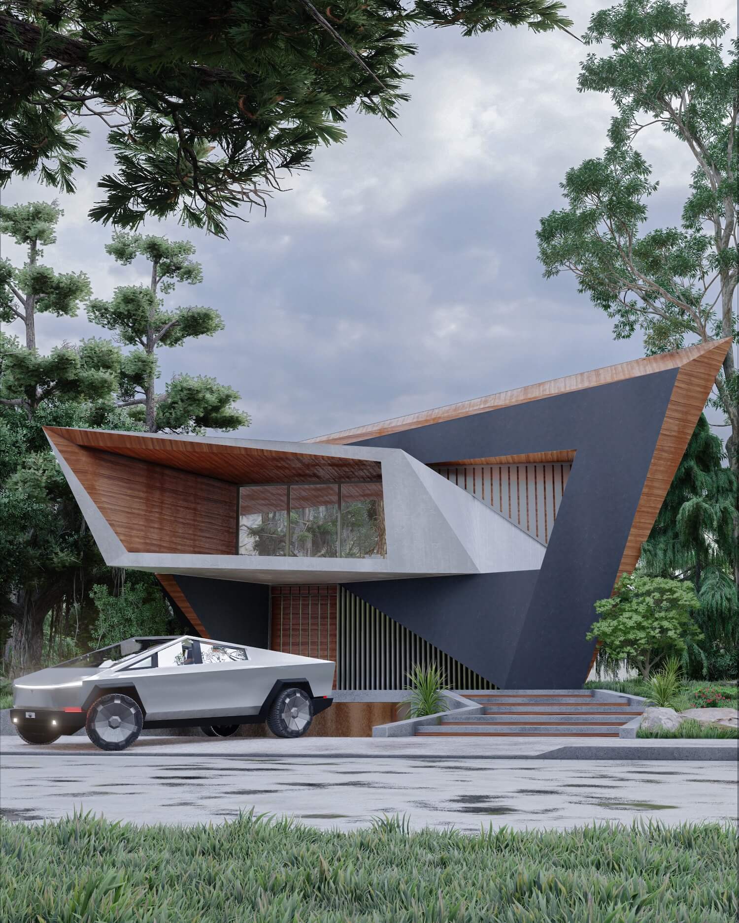 4. บ้านสไตล์โมเดิร์นแปลกตาด้วยรูปทรง