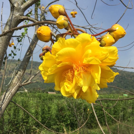 ดอกไม้สีเหลืองที่เป็นไม้ยืนต้น ผลัดใบออกดอกเป็นช่อที่ปลายกิ่งและส่งกลิ่นหอม หากปลูกไว้ในบ้านจะเป็นสิริมงคลและเสริมโชคลาภให้แก่ผู้อยู่อาศัย ดูแลง่าย เพราะเป็นต้นไม้ที่ทนต่อทุกสภาพอากาศ เจริญเติบโตได้ดีในทุกพื้นที่ เพียงปลูกในบริเวณที่มีแดดจัด พร้อมทั้งหมั่นรดน้ำพอประมาณเป็นประจำทุกวันก็เพียงพอแล้ว