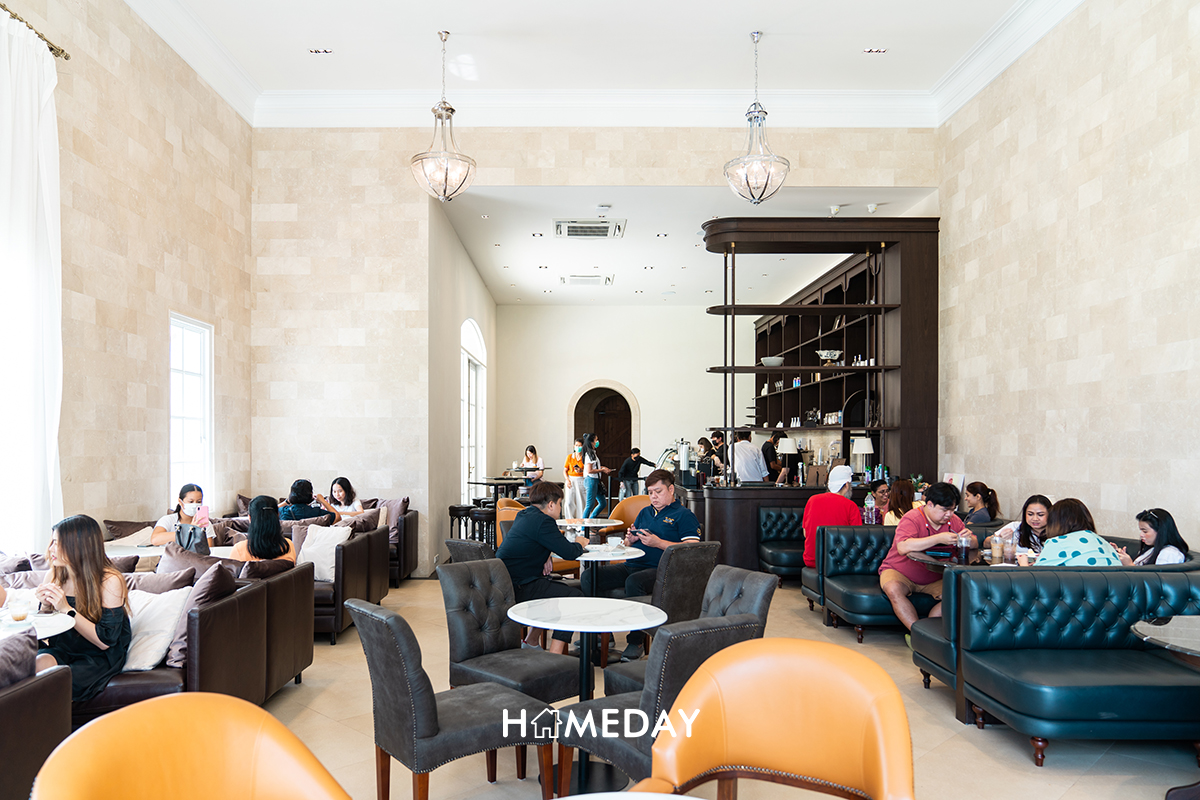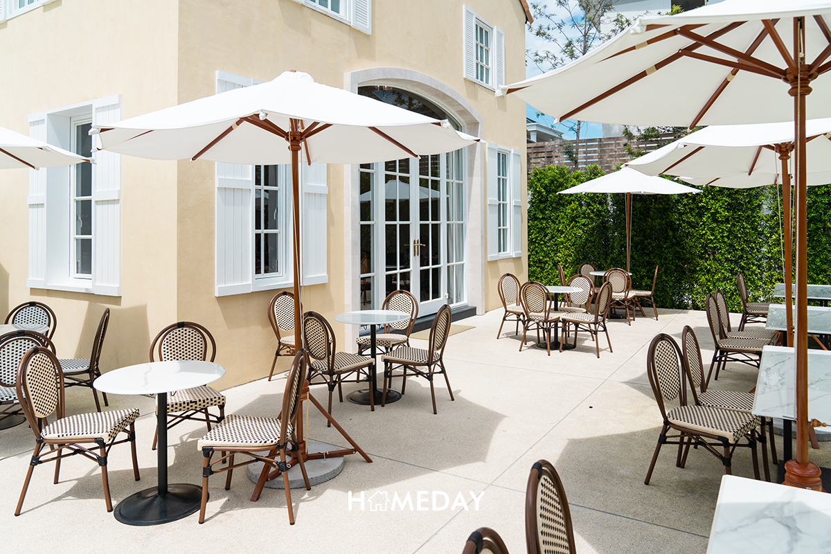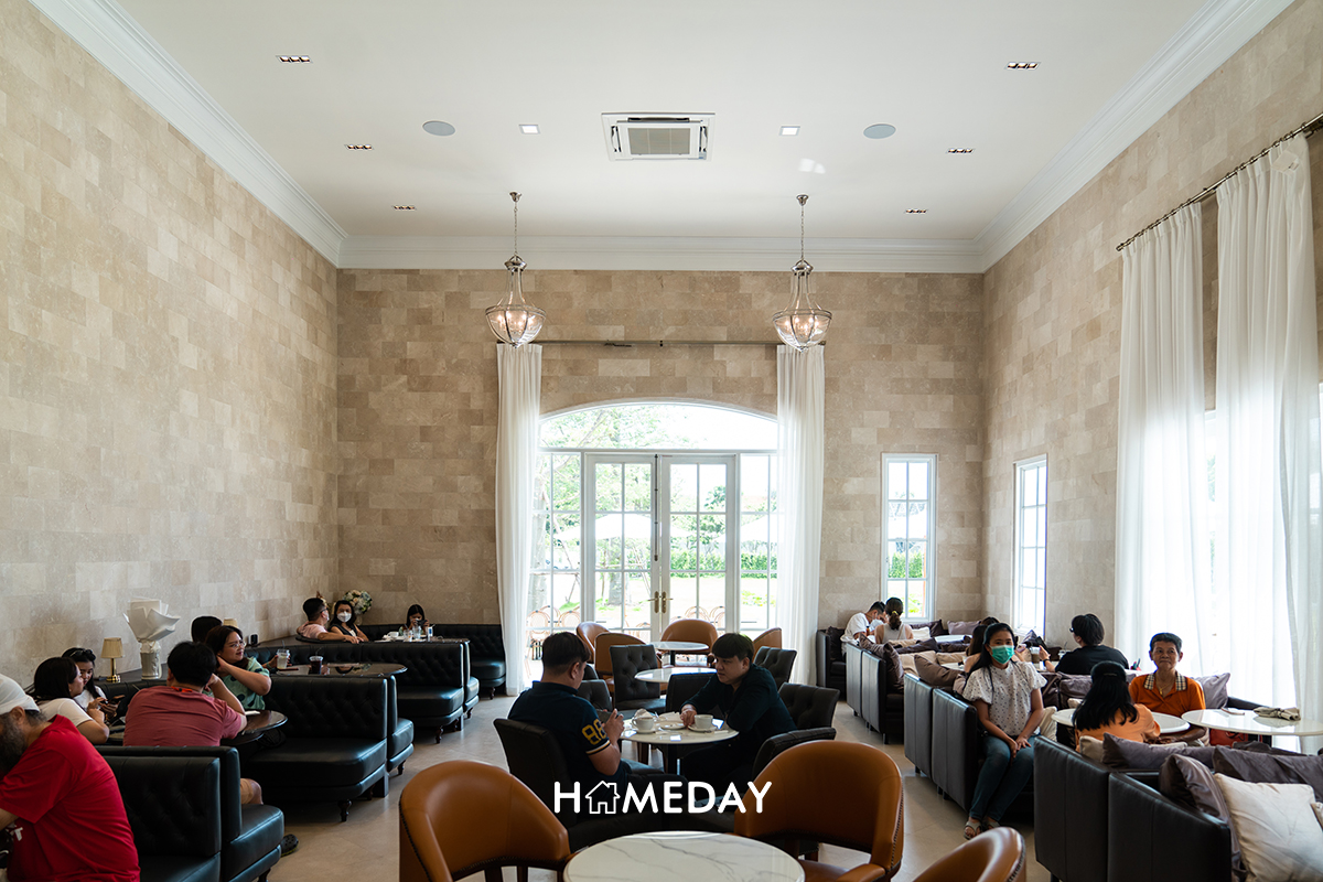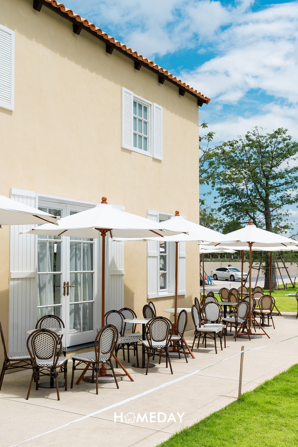 มาเริ่มจากบรรยากาศการตกแต่งออกแบบร้านกันก่อนเลย บอกเลยสายคาเฟ่ฮอปเปอร์ต้องไม่พลาดแวะมาเช็กอินถ่ายรูปลงโซเชียล ร้านนี้เค้าคุมโทนสีครีม ขาว น้ำตาล แต่งแนวเอิร์ธโทนมาได้เลย ตัวอาคารสีเหลืองสไตล์ Bordeaux ให้กลิ่นอายหมู่บ้านในยุโรป มาพร้อมสวนขนาดใหญ่ ภายในตกแต่งอย่างหรูหรา ไม่แพ้คาเฟ่ในกรุงปารีส จะมุมด้านนอก หรือมุมด้านใน มุมไหน ๆ ก็สวย ให้ฟีลอยู่ต่างประเทศทุกมุม