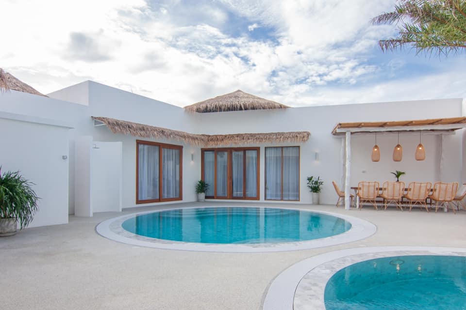 บ้านพักตากอากาศสไตล์มินิมอล สีขาวคลีน สะอาดตา ภายในตกแต่งสวยหรู พร้อมสิ่งอำนวยความสะดวกครบครัน จุดเด่นคือมีวิลล่าส่วนตัว และพื้นที่สังสรรค์ที่เป็นส่วนตัว ไม่ยุ่งเกี่ยวกับใคร ถูกใจวัยรุ่นแน่นอน แถมยังอยู่ใกล้ทะเลหัวหินอีกด้วยค่ะ