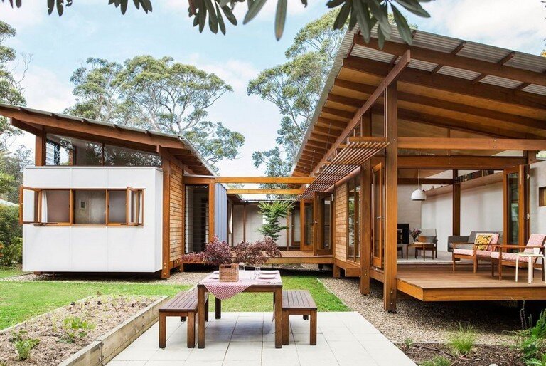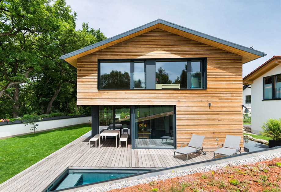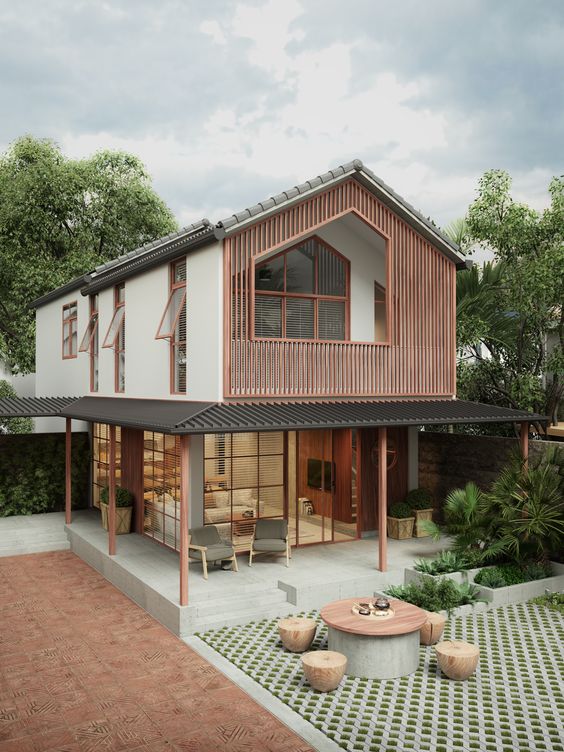 แบบบ้านไม้กึ่งปูน แบบที่ 5 สำหรับบ้านไม้กึ่งปูนแบบที่ 5 ถือได้ว่าเป็นบ้านทรงจั่วที่มีความสวยงาม ตกแต่งออกมาได้อย่างเรียบง่าย ดีไซน์ผสมผสานแบบดั้งเดิมเข้ากับสมัยใหม่ น่าจะถูกใจสายมินิมอล มูจิ อย่างแน่นอน พื้นที่บ้านชั้นล่างเลือกติดตั้งเป็นบานหน้าต่างขนาดใหญ่แบบเรือนกระจก ช่วยให้บ้านดูโปร่งโล่งและน่ารักขึ้นอีกเป็นเท่าตัว ในวันที่อากาศดี ๆ ก็สามารถเปิดรับลมเย็น ๆ เข้ามาได้อย่างเต็มที่ เสมือนมีใต้ทุนบ้านที่สามารถเปิด-ปิดเองได้ เหมาะมาก ๆ สำหรับครอบครัวขนาดใหญ่ค่ะ