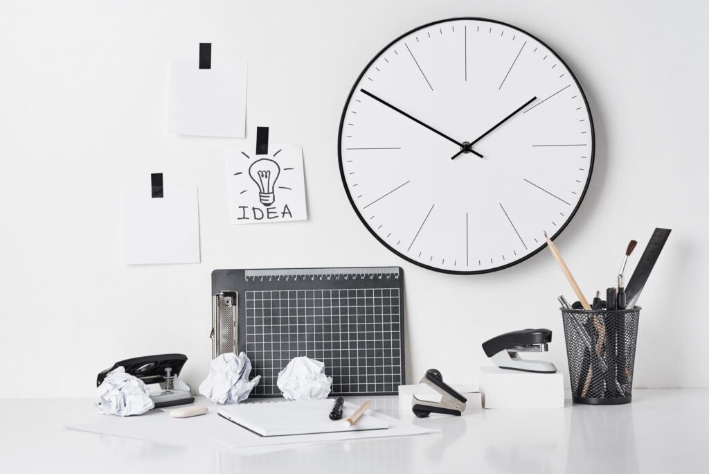 นาฬิกาในห้องทำงานช่วยควบคุมและติดตามเวลาการทำงาน เลือกนาฬิกาที่มีดีไซน์เรียบง่าย ทันสมัย และมีความน่าเชื่อถือ ติดตั้งในตำแหน่งที่มองเห็นได้ง่ายโดยไม่ต้องหมุนตัว