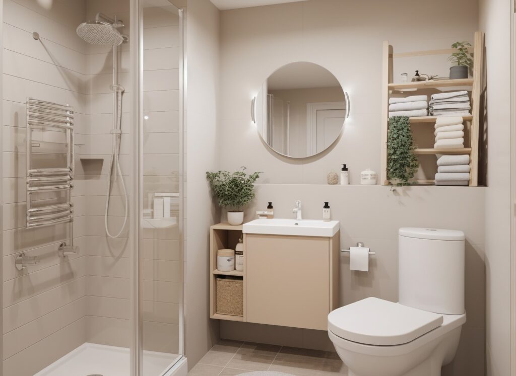 • ใช้สีขาว ครีม หรือสีพาสเทลอ่อน เพื่อสะท้อนแสงและทำให้ห้องน้ำดูกว้างขึ้น