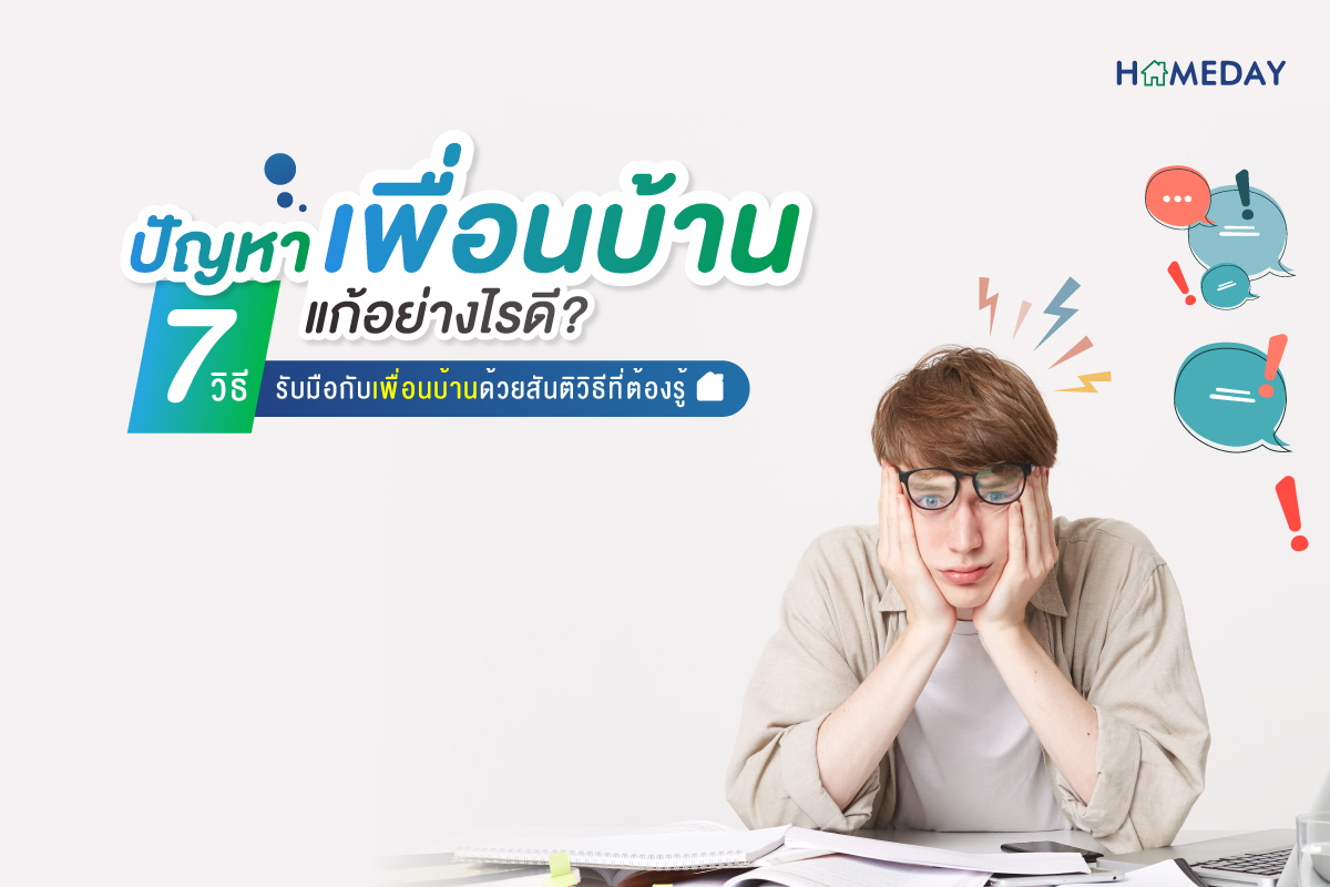 ปัญหาเพื่อนบ้าน เป็นปัญหาคลาสสิคที่ไม่ว่าใครก็ต้องเคยพบเจอค่ะ ต่างกันที่ระดับของปัญหา บางคนเจอน้อย ไม่ส่งผลกระทบต่อชีวิตประจำวันมากนัก ก็ยังสามารถยอม ๆ กันไปได้ แต่ในบางกรณีก็เป็นปัญหาใหญ่ที่ส่งผลต่อชีวิตประจำวัน เช่น ปัญหาเรื่องเสียงในเวลากลางคืน ปัญหาเรื่องการจอดรถขวางหน้าบ้าน ปัญหาเรื่องสัตว์เลี้ยง ทำให้หลายคนหนักอกหนักใจ ไม่รู้จะแก้ไขอย่างไรดี ไม่รู้จะเริ่มต้นจากตรงไหน ทำอย่างไรให้ไม่เกิดความบาดหมางระหว่างกัน วันนี้ Homeday มี 7 วิธี รับมือกับเพื่อนบ้านด้วยสันติวิธีที่ต้องรู้มาฝากทุกคนกันแล้วค่ะ