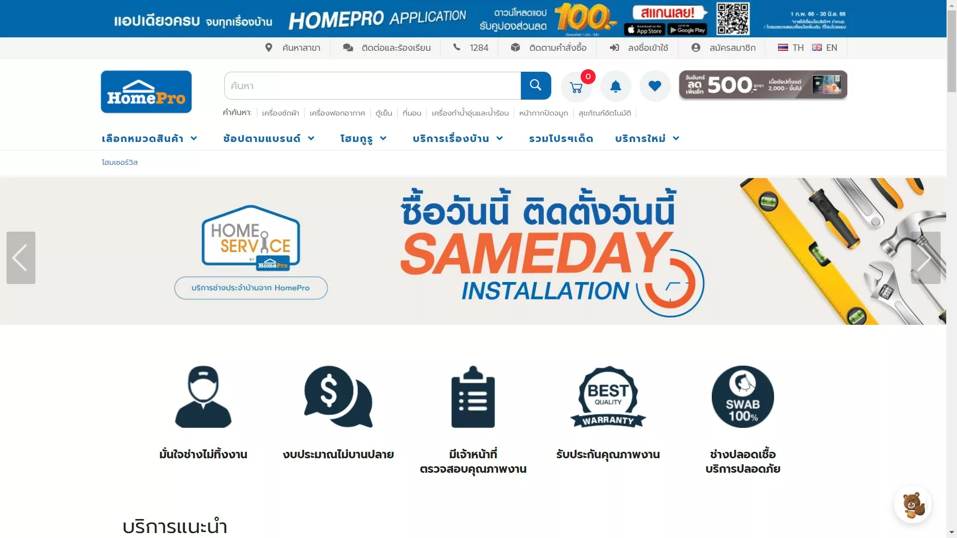 แอปบริการช่างที่ถูกใจคนมีบ้านสุด ๆ เพราะให้บริการทุกวัน ตลอด 24 ชั่วโมง ใครมีปัญหาเครื่องปรับอากาศไม่เย็น มีน้ำหยด ท่อประปาแตก ไฟดับ ไฟช็อต หรือปั๊มน้ำไม่ทำงาน สามารถเรียกช่างจาก Home Service by HomePro ได้เลย แต่จะมีพื้นที่ให้บริการเฉพาะเขตกรุงเทพฯ และปริมณฑลเท่านั้น