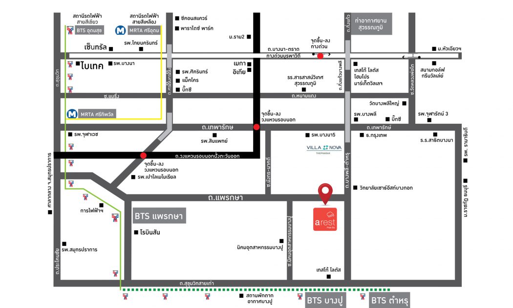ติดถนนแพรกษาBTS สถานีบางปูBTS สถานีแพรกษาจุดขึ้น-ลง วงแหวนรอบนอกด้านตะวันออก