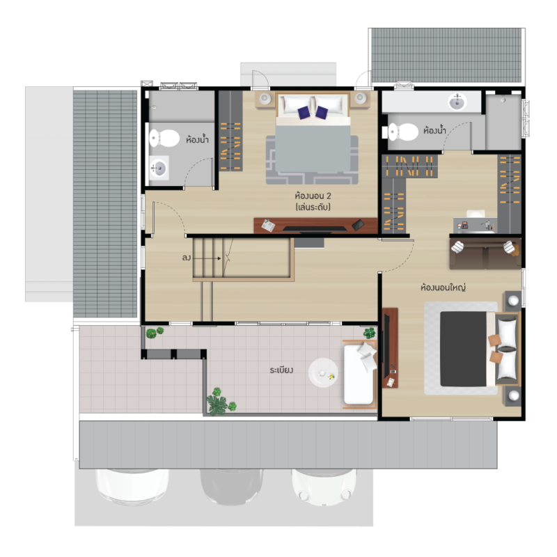 พื้นที่ใช้สอย 218 ตร.ม. 4 ห้องนอน, 5 ห้องน้ำ, 1 ห้องครัว พร้อมที่จอดรถ 3 คัน
