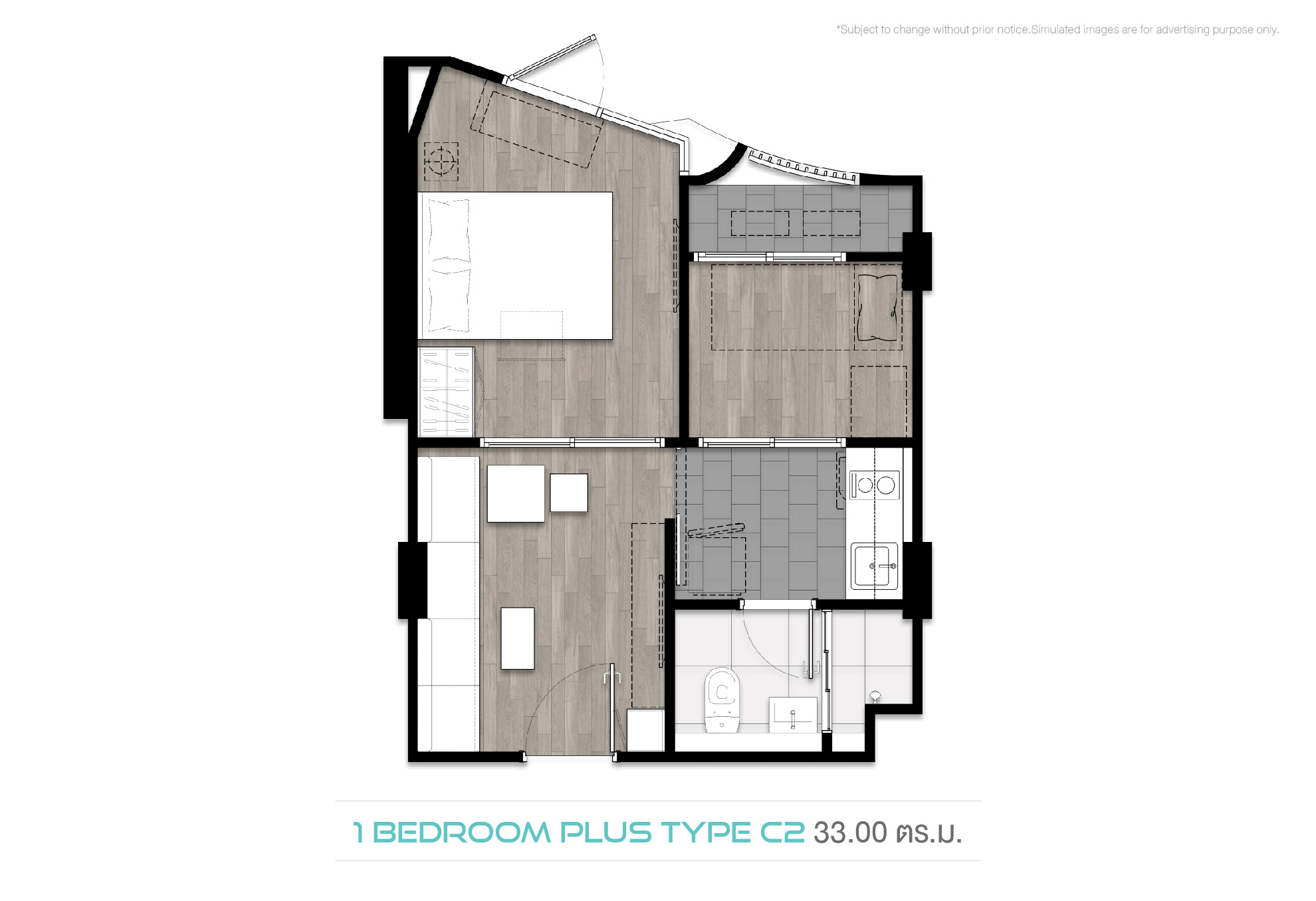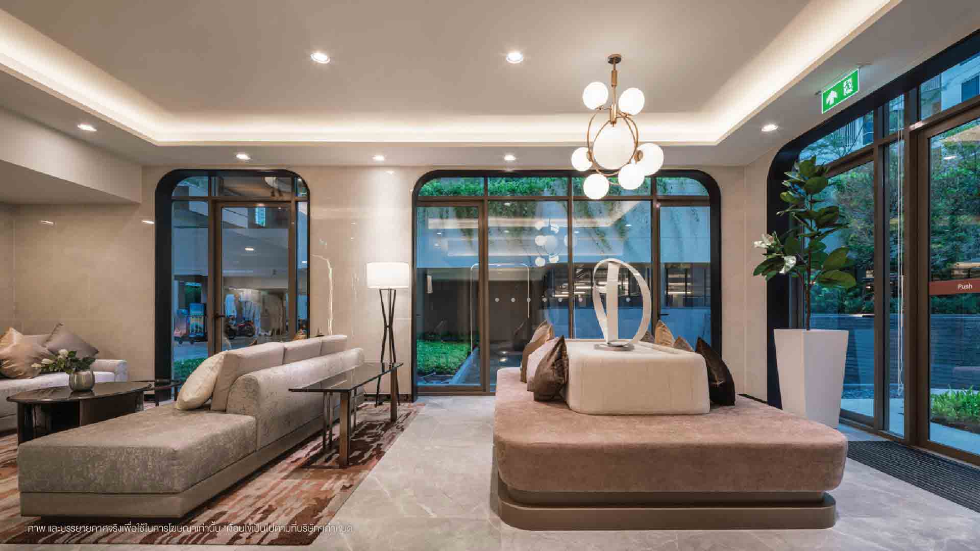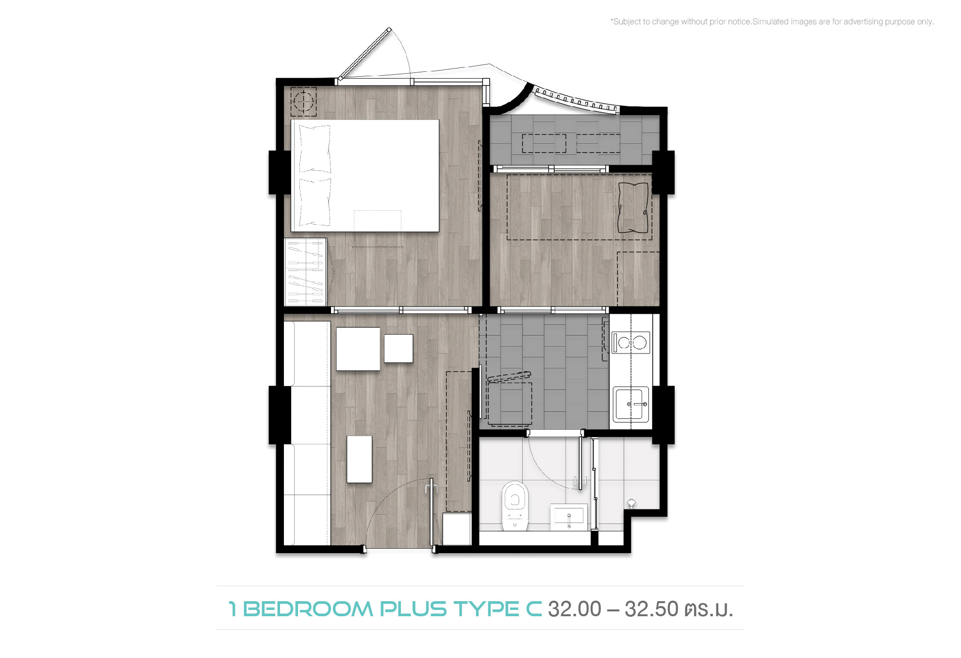 เมื่อเปิดประตูบ้านเข้ามา จะพบ Living Area ที่มีขนาดกว้างพอสมควร สามารถวางชุดโซฟา และชั้นวางทีวีได้ค่ะ ยังมีพื้นที่เหลือสำหรับเดินสวนกันได้สบาย สำหรับห้อง Master Bedroom จะมีห้องน้ำในตัวค่ะ ภายในห้องน้ำออกแบบมาให้ใช้สอยได้อย่างสะดวกเช่นเคยค่ะ แบ่งโซนเปียก-แห้ง ไว้ชัดเจน มีที่กั้น Partition กระ