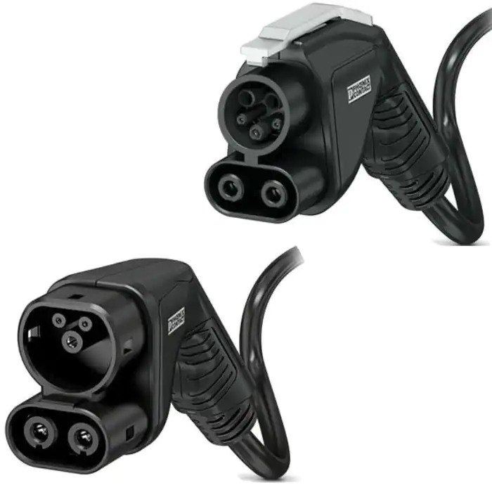3. EV Charger หัวชาร์จแบบ CCS : ที่ย่อมาจาก Combined Charging System ซึ่งสามารถแบ่งย่อยออกไปได้อีก 2 แบบ นั่นคือ CCS TYPE 1 เป็นหัวชาร์จที่นิยมใช้ในสหรัฐอเมริกา โดยหัวชาร์จจะมีขนาดเล็กกว่าแบบ CCS Type 2 ซึ่ง CCS TYPE 1 นี้สามารถรองรับรงดันไฟฟ้าที่ 200 V – 500 V และ CCS Type 2 เป็นหัวชาร์จที่นิยมใช้ในหลายประเทศในโซนยุโรป และที่สำคัญคือให้มีกำลังไฟได้มากกว่า หัวชาร์จ CCS Type 1 อีกด้วย