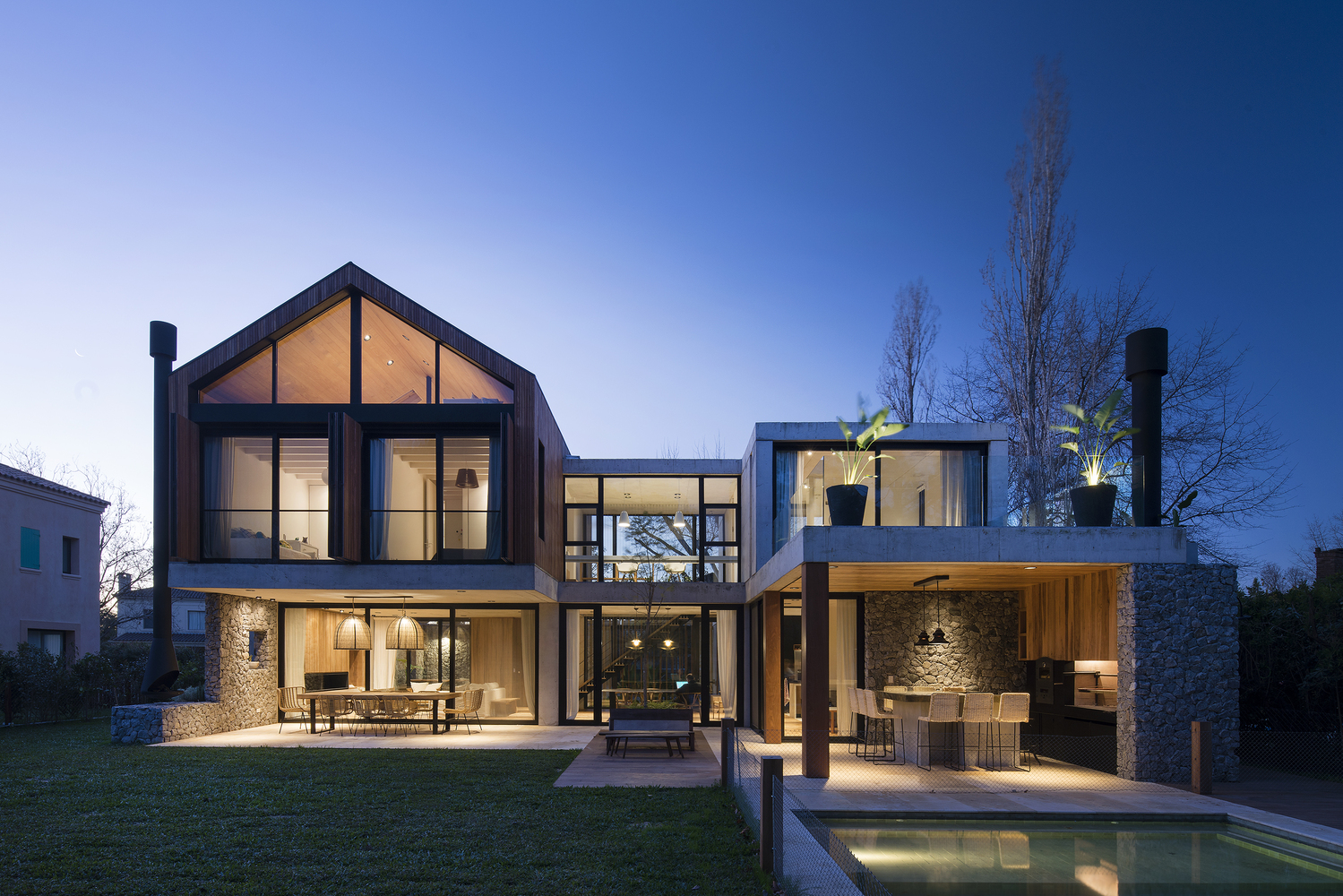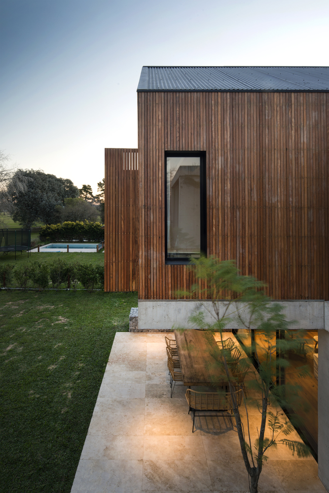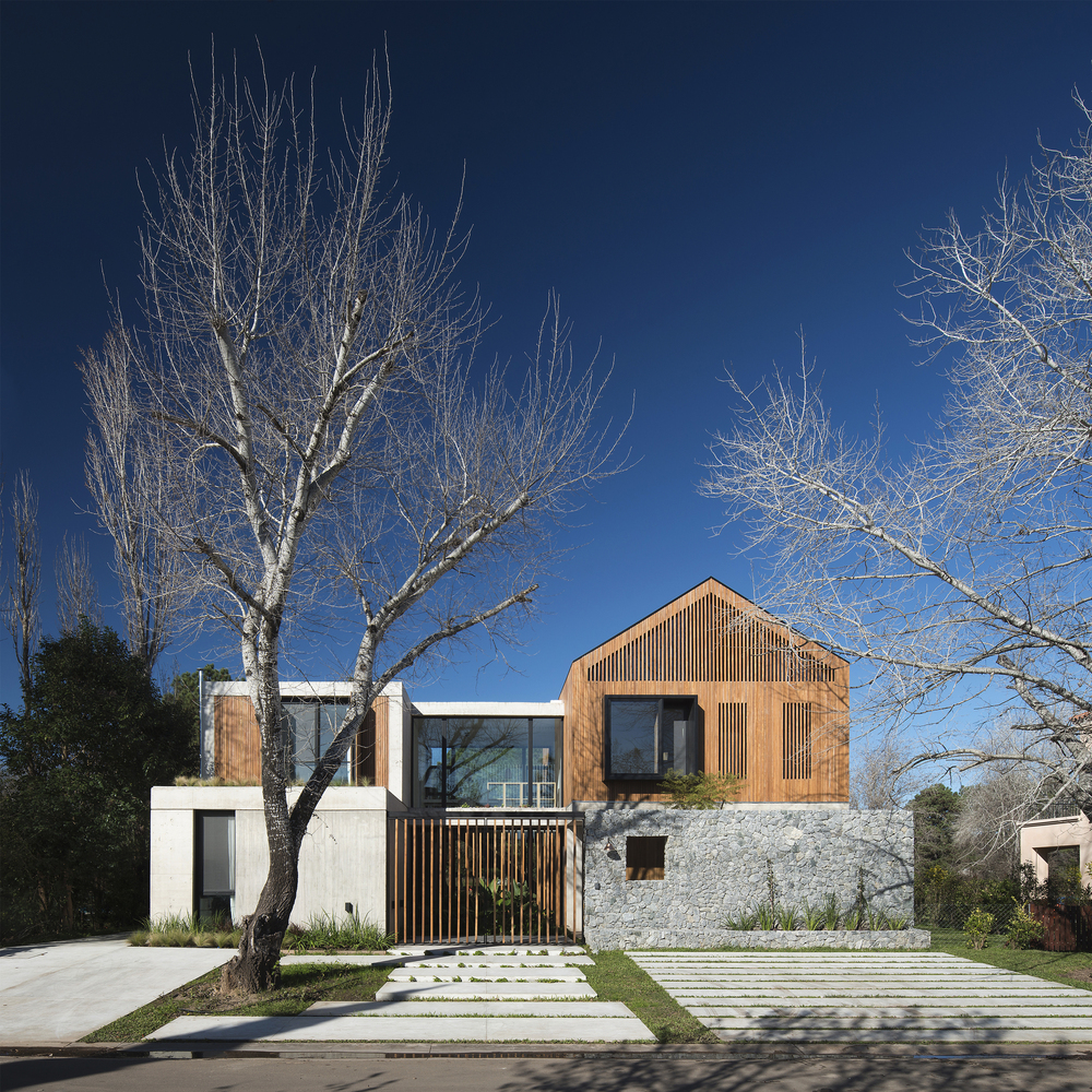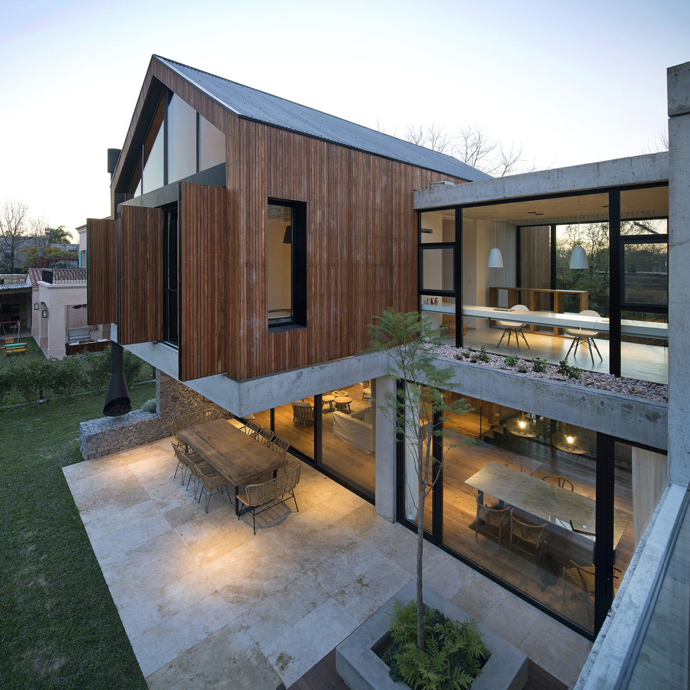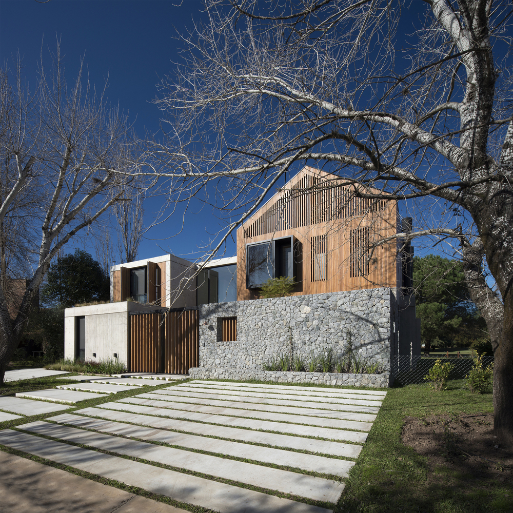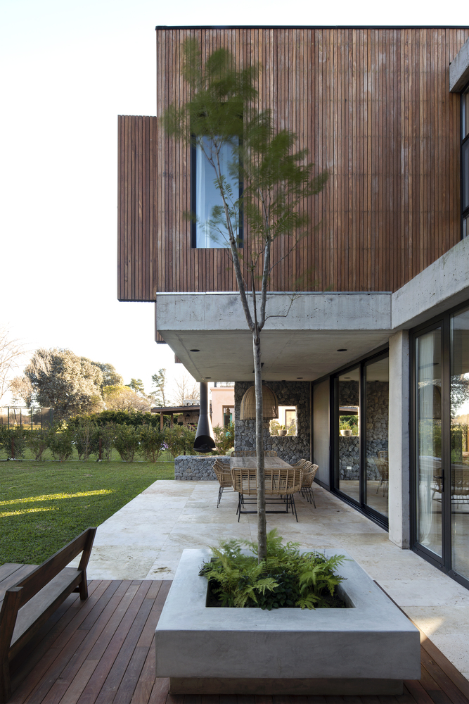 ไอเดียแต่งบ้านหลังนี้ออกแบบโดย Estudio LAK อยู่ในประเทศอาร์เจนตินา ซึ่งในพื้นที่แปลนบ้านหลังนี้ในบริเวณหน้าบ้านมีต้นไม้เก่าแก่ต้นใหญ่อยู่ ทำให้เป็นแรงบันดาลใจที่จะออกแบบบ้านให้กลมกลืนไปกับบรรยากาศโดยรอบได้อย่างสมบูรณ์แบบ และสวยสะดุดตาไปกับดีไซน์บ้านที่ผสมผสานด้วยหลากหลายวัสดุได้อย่างลงตัว
