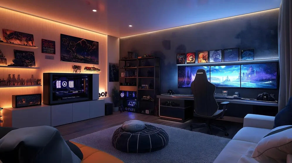 นอกจากอุปกรณ์หลักแล้ว การเพิ่มไอเทมตกแต่งจะช่วยสร้างเอกลักษณ์ให้กับห้องเกมเมอร์ของคุณ วอลเปเปอร์ลายกราฟิกเกม หรือโปสเตอร์เกมที่คุณชื่นชอบจะช่วยสะท้อนความเป็นตัวตนและสร้างบรรยากาศตามสไตล์ที่ต้องการ