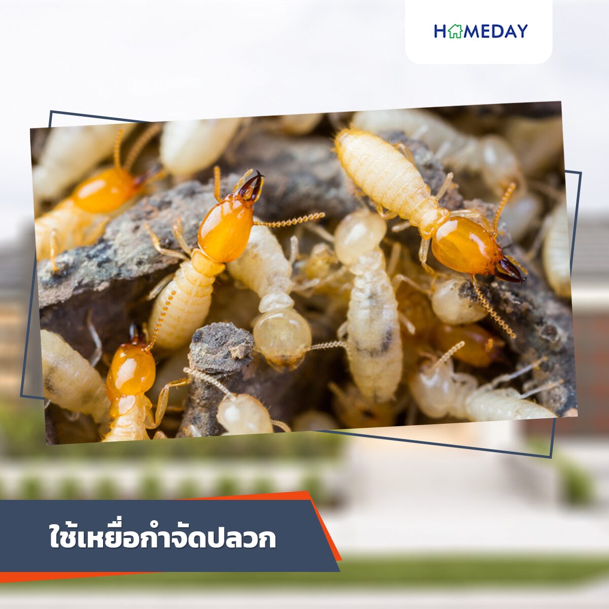 หากบ้านคุณมีส่วนประกอบของไม้ที่ไม่เคลือบสารกันปลวก มีความเป็นไปได้ที่ปลวกจะเข้าไปกินไม้เหล่านั้น และสร้างความปวดหัวให้กับคุณอีกต่อหนึ่ง สำหรับบ้านปูน หากไม่จัดการอย่างเหมาะสม บรรดาฝูงแมลงเม่าจะมาเยือนบ้านของคุณทุกปี