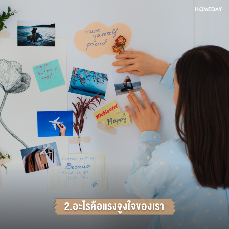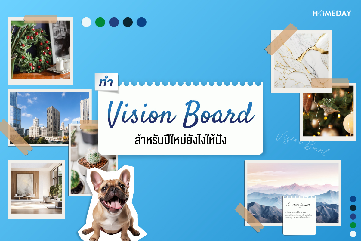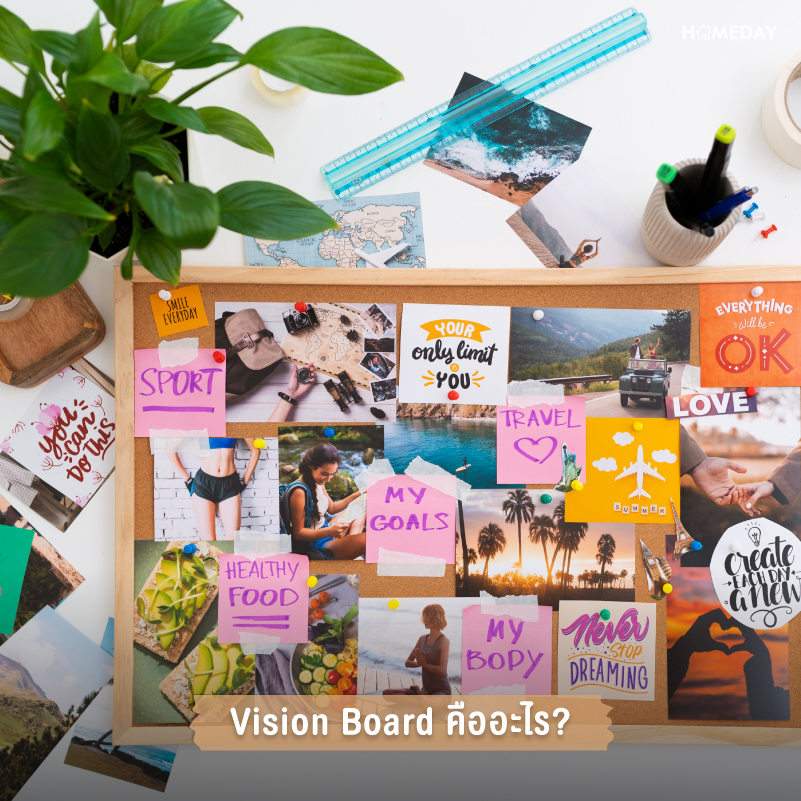 การทำ Vision Board เป็นหนึ่งในวิธีที่ดีที่สุดในการรักษาเป้าหมาย ความฝัน และแรงบันดาลใจของเราให้มองเห็นได้ชัดเจนยิ่งขึ้น Vision Board จะช่วยให้เรามีสมาธิและขับเคลื่อนแรงจูงใจในการบรรลุเป้าหมายได้ ไม่ว่าเป้าหมายเหล่านั้นจะเล็กหรือใหญ่ วันนี้ Homeday เลยรวบรวมเคล็ดลับและแนวคิดเกี่ยวกับ Vision Board มาฝากทุกคนกัน รับรองว่าอ่านจบแล้ว เริ่มลงมือทำได้เลยทันที