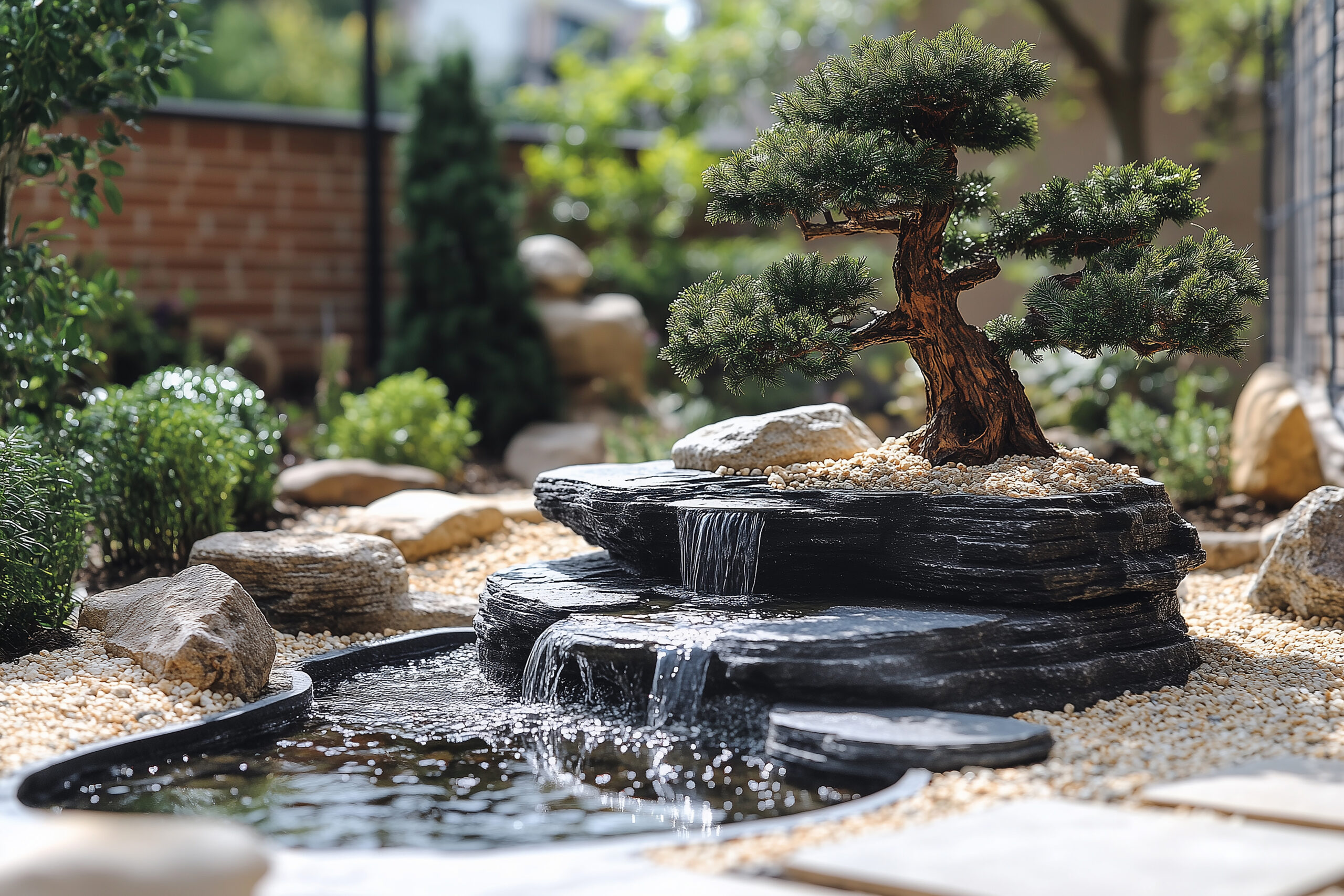 น้ำเป็นองค์ประกอบสำคัญที่สร้างความรู้สึกสงบและมีชีวิตชีวาให้กับสวนญี่ปุ่น ในพื้นที่จำกัด คุณสามารถสร้างอ่างน้ำล้นหรือทสึคุบาอิ (Tsukubai) ซึ่งเป็นอ่างน้ำหินที่ใช้ในพิธีชงชาของญี่ปุ่น