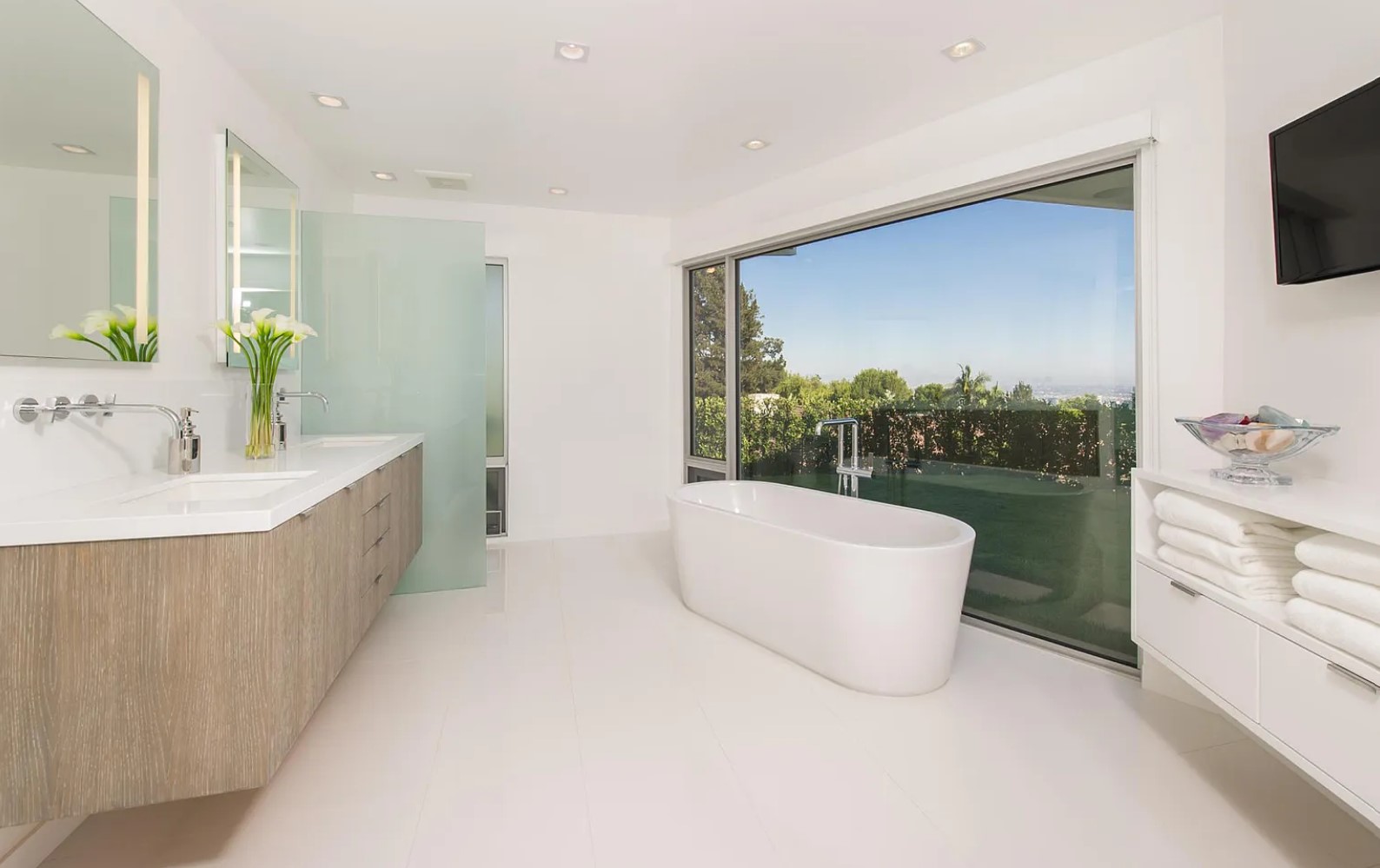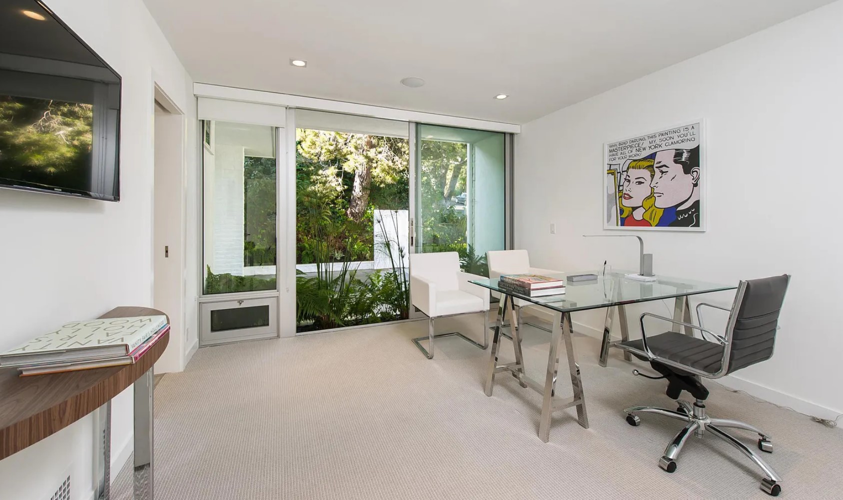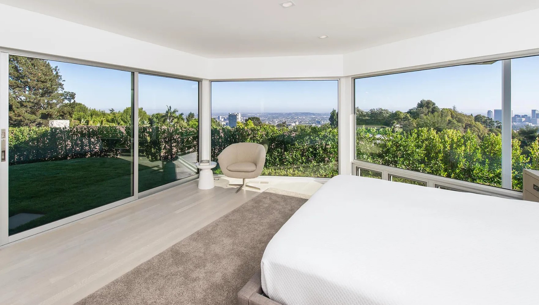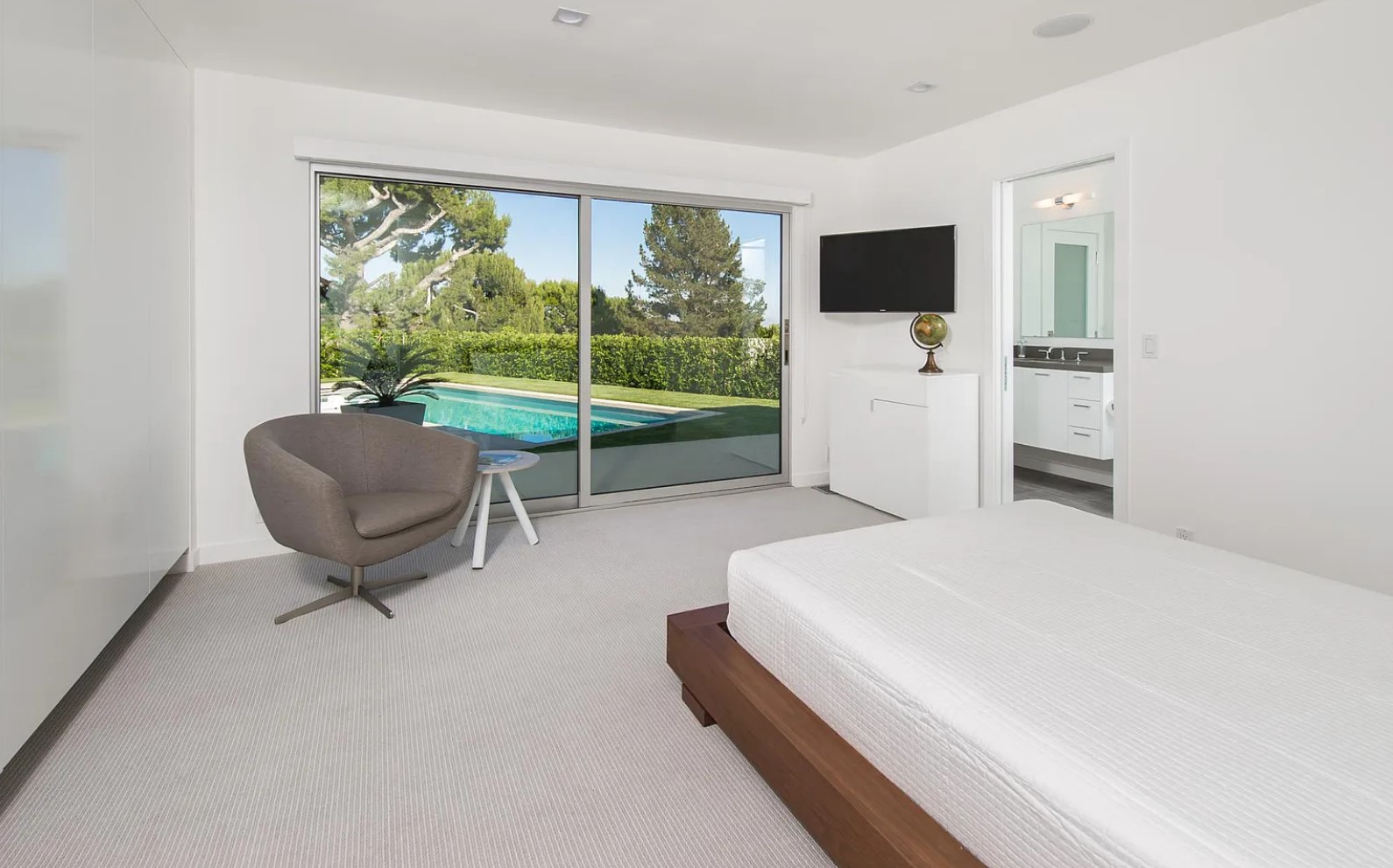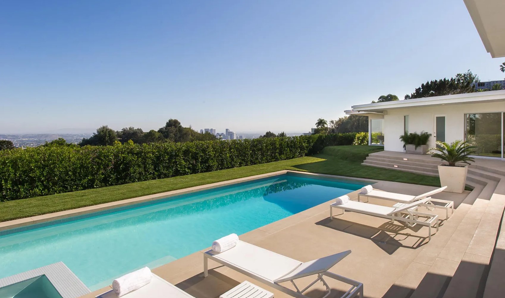ภายในบ้านคุมโทนด้วยสีสว่างอย่างสีขาวเป็นหลัก พร้อมกับติดตั้งบานกระจกใสขนาดใหญ่ ก็ยิ่งทำให้บ้านมีทั้งความสว่าง และโปร่งสบายมีแสงสาดส่องเข้ามาได้อย่างเต็มที่ ส่วนการตกแต่งจะเลือกใช้เฟอร์นิเจอร์ที่เป็นวัสดุแปลกใหม่ นอกเหนือจากพื้นผิวธรรมชาติอย่างไม้ ปูน หิน ไปสู่สิ่งที่สังเคราะห์ขึ้นอย่าง กระจก พลาสติก โลหะ มามิกซ์แอนด์แมชท์ในสไตล์ Mid-Century ได้อย่างลงตัว นอกจากนี้ตรงสระว่ายน้ำยังได้มีการแบ่งเป็นโซน Jacuzzi ให้ได้ลงไปแช่แบบฟินๆ ในพื้นที่ส่วนตัวอย่างสบายใจ ท่ามกลางกลางธรรมชาติ และวิวทิวทัศน์ที่สวยงาม
