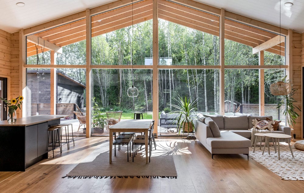 • เห็นวิวได้ง่าย : บ้านสไตล์นอร์ดิกจะมี มีช่องแสง หน้าต่าง ประประตูส่วนใหญ่ทำจากกระจก เพราะต่างประเทศมีอากาศที่ค่อนข้างหนาว จึงต้องการความอบอุ่นจากแสงอาทิตย์ และข้อดีก็จะตามมา คือ หากเราอยู่ภายในตัวบ้านก็จะเห็นวิวได้ง่ายยิ่งขึ้น เหมาะกับบ้านที่อยู่ต่างจังหวัด บ้านสวน หรือบ้านที่มีวิวสวย ๆ