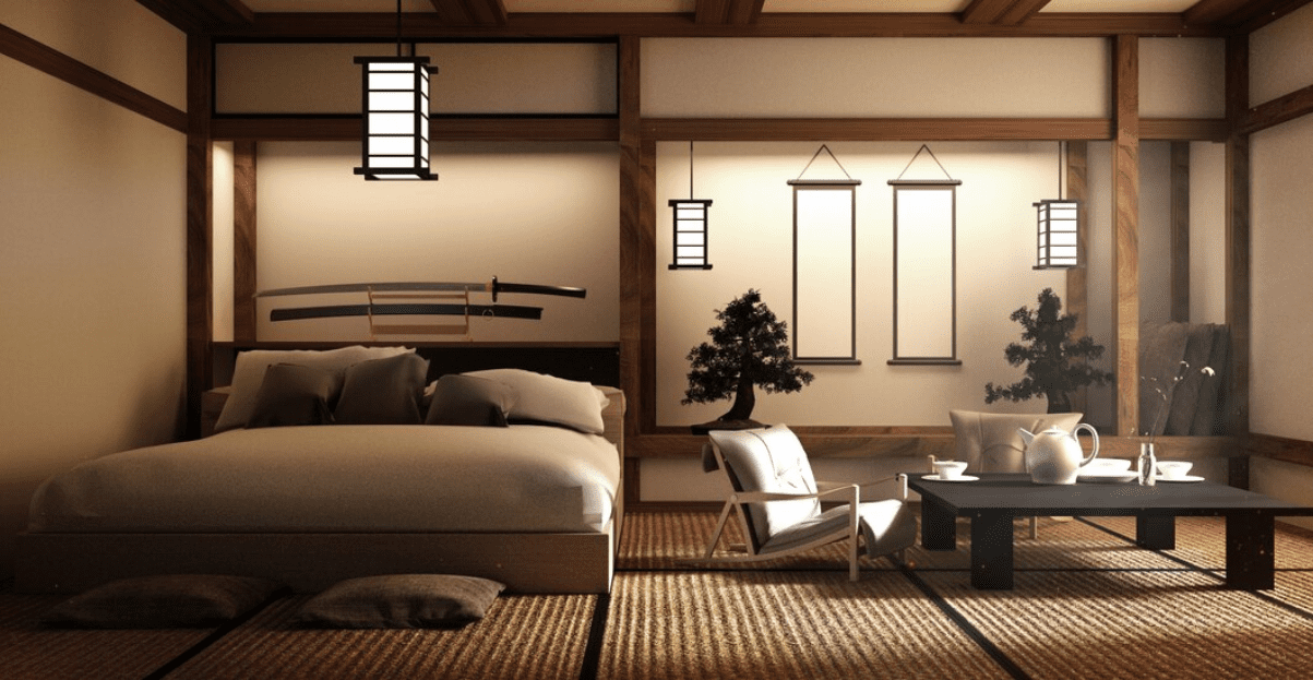 การออกแบบ Japanese ให้ความสำคัญกับการควบคุมแสงผ่านการใช้ “Shoji” หน้าต่างหรือประตูที่ทำจากกระดาษและโครงไม้ ช่วยกรองแสงและสร้างบรรยากาศที่นุ่มนวล พื้นที่ถูกออกแบบอย่างเป็นสัดส่วน เน้นความกระชับและมีประโยชน์