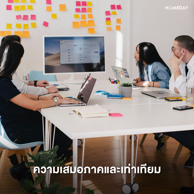 ความเสมอภาคและเท่าเทียม โลกของการทำงานยุคใหม่นอกจากจะไร้ขอบเขตในการทำงาน เช่น ออฟฟิศใหญ่อยู่อีกประเทศ สามารถประชุมทางการและสั่งการงานไปยังสาขาที่กระจายอยู่ทั่วโลกแล้ว ยังเป็นการทำงานท่ามกลางผู้คนหลากหลาย ทั้งต่างประเทศ และผู้คนทุกเพศทุกวัย ดังนั้น Workplace ที่ให้น้ำหนักกับความเสมอภาคและความเท่าเทียมได้ดีจะได้รับการยอมรับจาก Worker คนรุ่นใหม่ที่พร้อมจะร่วมงานทำงานอย่างสร้างสรรค์ โดยไม่มีข้อจำกัดในด้านต่าง ๆ เข้ามาเกี่ยวข้อง