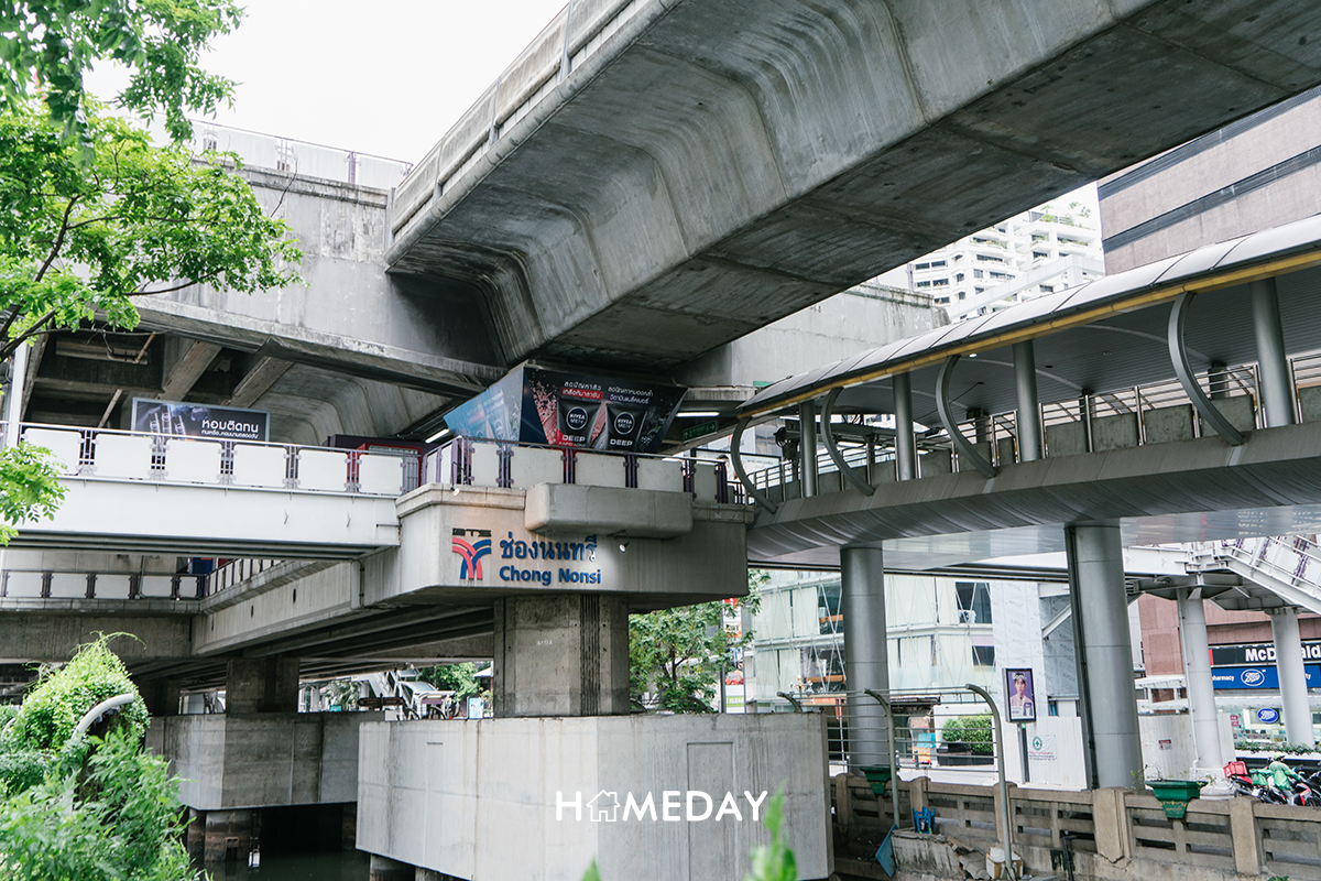 สกายวอล์คบริเวณสถานีช่องนนทรี ถือเป็นไอคอนสำคัญแห่งย่านสาทรเลยก็ว่าได้ค่ะ เพราะเป็นสถานที่ที่ทำให้นึกถึงชาวออฟฟิศคนทำงานที่สัญจรผ่านไปมามากมายแทบจะตลอดทั้งวัน เพื่อใช้เดินไปยังอาคารสำนักงานต่าง ๆ รอบ ๆ บริเวณ อีกทั้งยังเป็นจุดถ่ายภาพยอดนิยมที่ต้องห้ามพลาดหากมาที่ย่านสาทรอีกด้วย เป็นโลเคชันที่กองถ่ายทำทั้งหนัง ซีรีส์ และโฆษณา นิยมเลือกใช้มาก ๆ เพราะเป็นที่ที่ทำให้ผู้คนนึกถึงย่านเมืองหลวงนั่นเอง