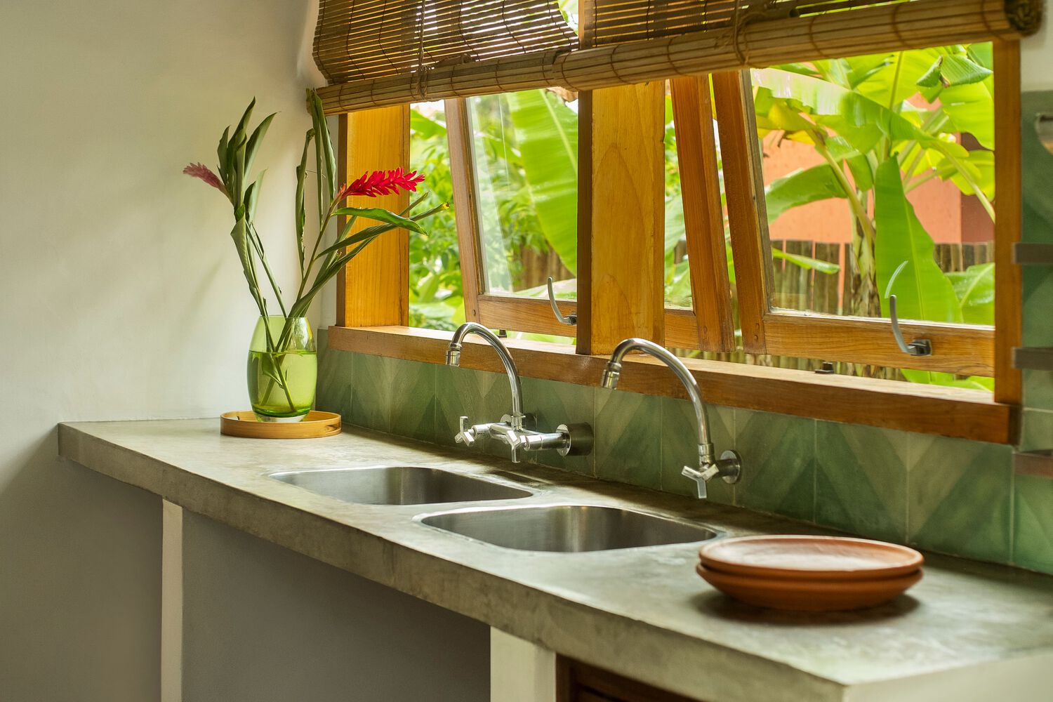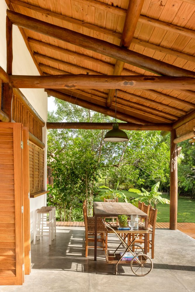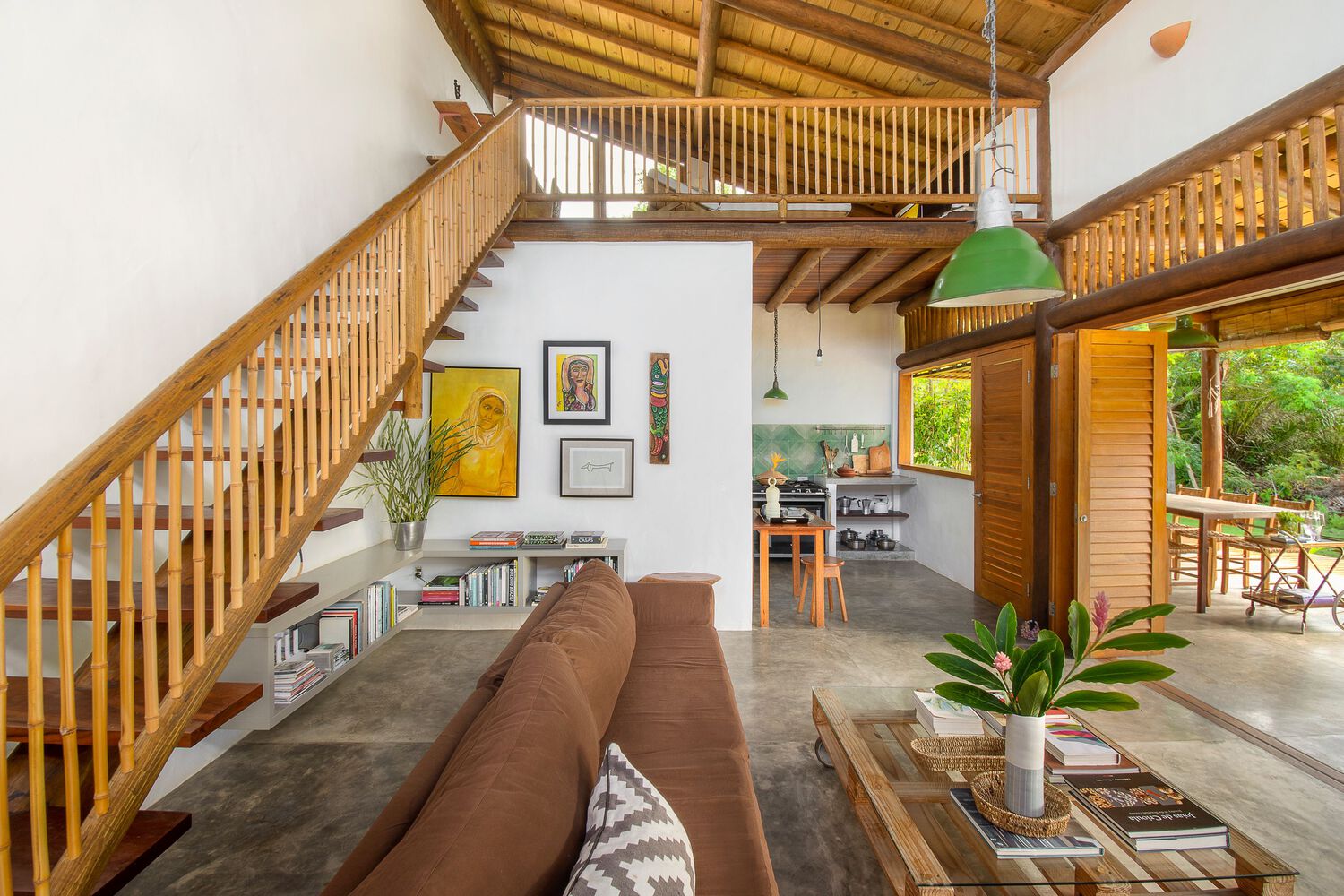 โครงสร้างบ้านหลังนี้ถูกออกแบบอย่างเรียบง่ายเป็นสองหลัง สร้างจากวัสดุธรรมดาที่ดีไซน์เรียบง่ายไม่ซับซ้อน แต่ทุกอย่างที่เลือกใช้ล้วนเหมาะกับสภาพภูมิอากาศอย่างลงตัว มีหลังคาหน้าจั่วเชื่อมถึงกัน และเฉลียงไม้ที่ยื่นออกมาเป็นพื้นที่สำหรับใช้ชีวิตนอกบ้าน ให้ผิวกายได้สัมผัสกับสายลมแสงแดด ชมวิวทิวทัศน์เพลิดเพลินไปกับธรรมชาติ นอกจากนี้ยังติดตั้งประตูบานเฟี๊ยมไม้แบ่งสัดส่วน หรือกั้นห้องได้อย่างมีมิติ สามารถเปิดกว้างให้กลมกลืนเป็นส่วนหนึ่งกับธรรมชาติได้อย่างใกล้ชิด อากาศถ่ายเทสะดวก มีลมโกรกไปมา สร้างบรรยากาศในแต่ละวันแบบไม่จำเจ