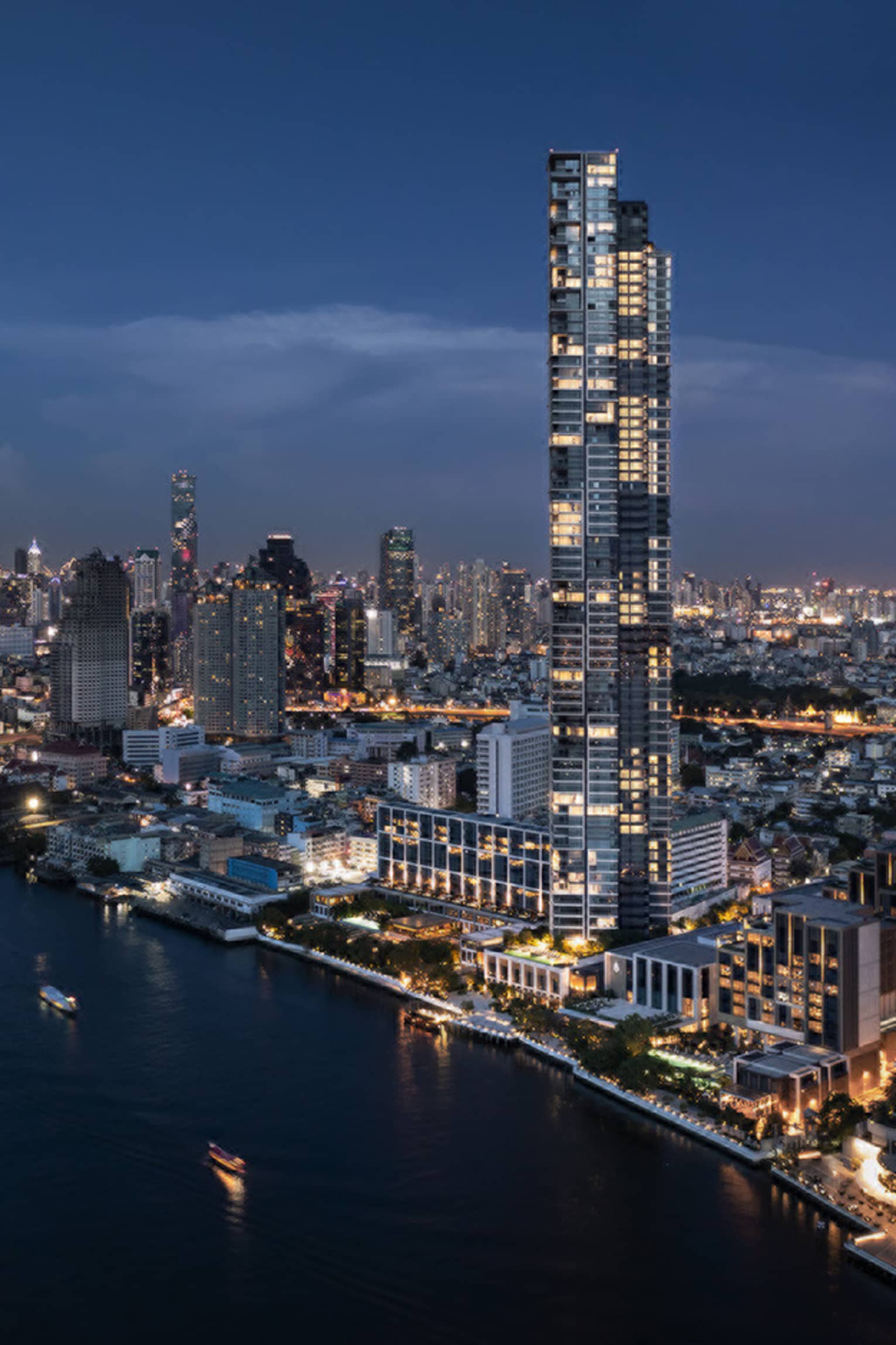 ตึกที่สูงที่สุดในประเทศไทย อันดับที่ 7 โครงการ Mixed Use สุดหรูระดับ Super luxury บนทำเลที่ดีที่สุด ที่ประกอบด้วย พลาซ่า, โรงแรม และ คอนโดมิเนียมแบบ High-Rise ติดริมแม่น้ำเจ้าพระยาที่สูงกว่า 253 เมตร เหมาะมาก ๆ สำหรับคนที่กำลังมองหาคอนโดมิเนียมทำเลดี วิวแม่น้ำเจ้าพระยาและชอบความเป็นส่วนตัว เพราะที่นี่มีห้องพักอาศัยเพียง 188 ยูนิต เดินทางได้ง่ายไม่ว่าจะเป็นทางบกหรือทางน้ำด้วยท่าเทียบเรือยอร์ชส่วนตัวของคอนโด