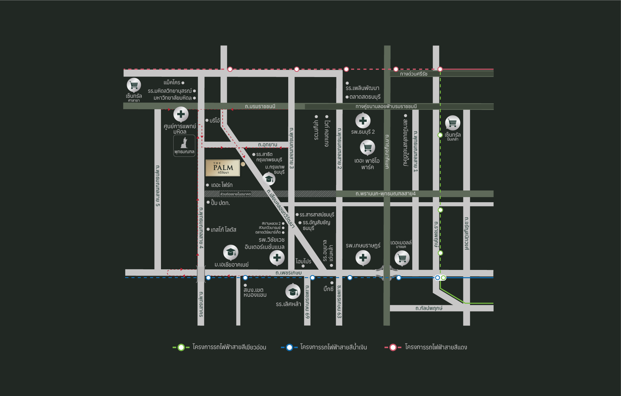 สถานศึกษามหาวิทยาลัยธรรมศาสตร์มหาวิทยาลัยกรุงเทพร.ร.สารสาสน์วิเทศคลองหลวง ห้างสรรพสินค้าแมคโคร คลองหลวงโลตัส คลองหลวงฟิวเจอร์ พาร์ค รังสิต สถานพยาบาลรพ.ภัทร-ธนบุรีรพ.การุญเวชรพ.เปาโล รังสิต