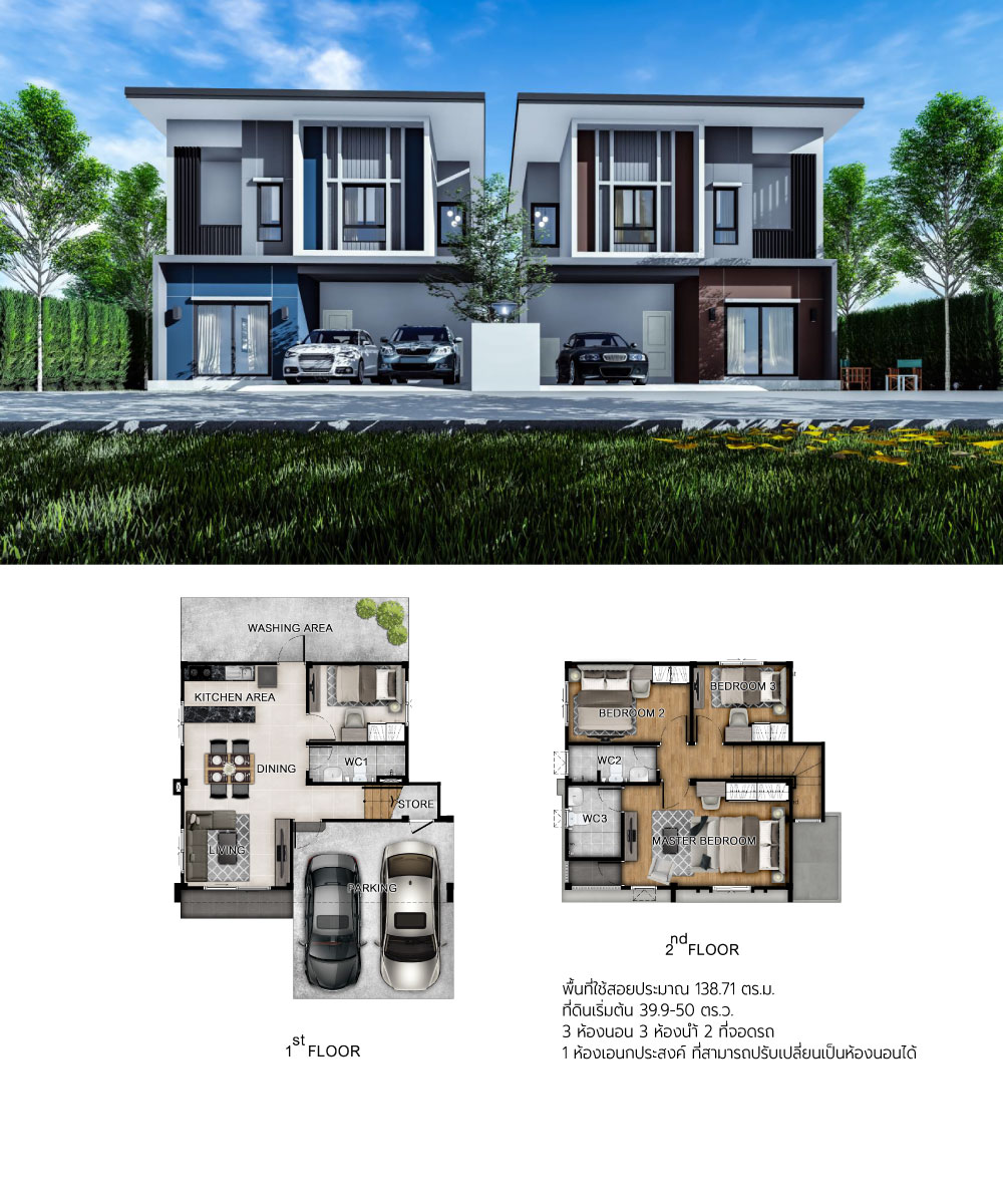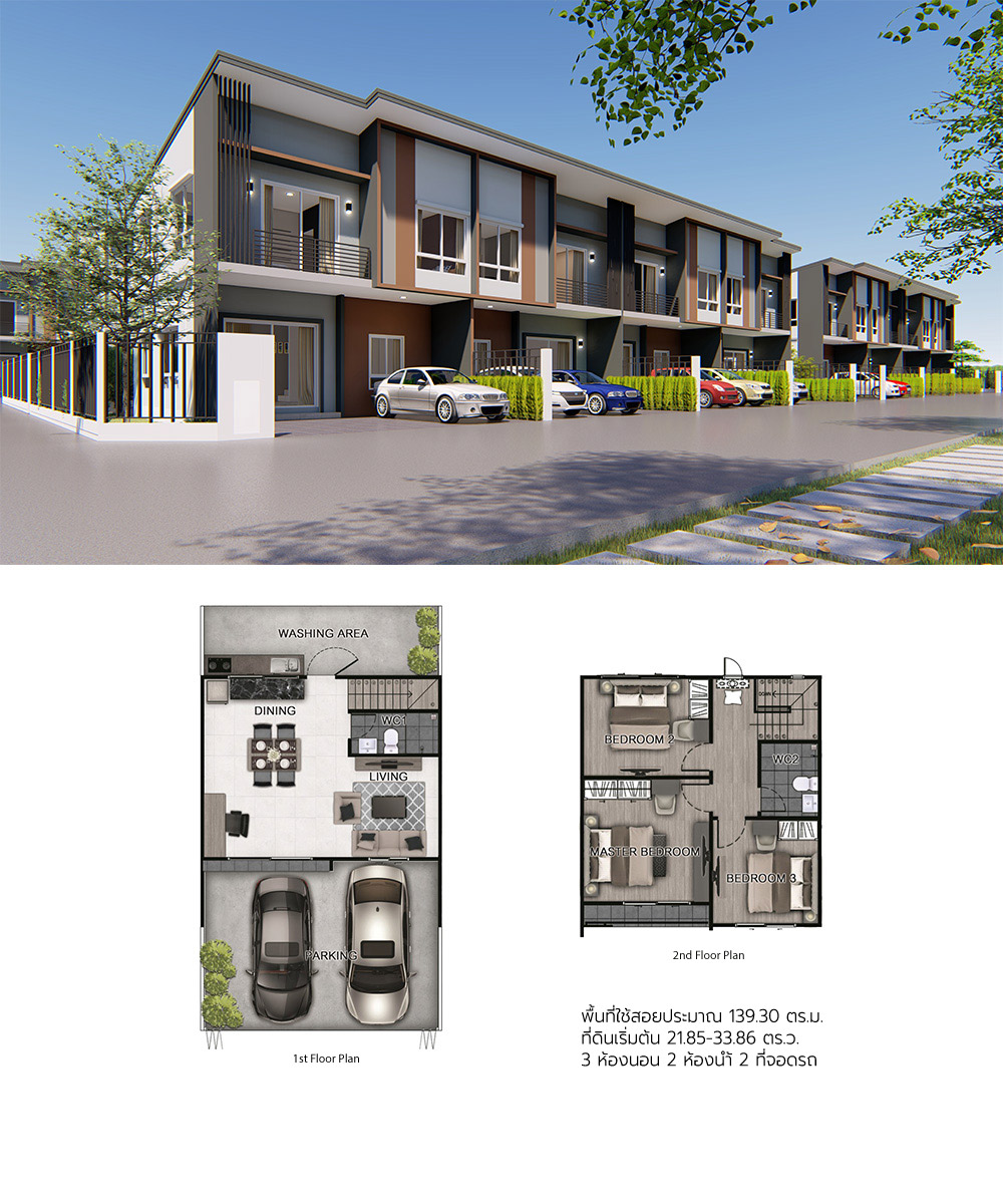 แบบบ้าน : MARIATROST 323 ตร.ม. 4 ห้องนอน 5 ห้องน้ำ 2 ห้องนั่งเล่น 1 ห้องพักผ่อนชั้นบน 1 ห้องแม่บ้าน 3 ที่จอดรถ แบบบ้าน : EGGENBERG 244 ตร.ม. 4 ห้องนอน 4 ห้องน้ำ 1 ห้องนั่งเล่น 1 ห้องพักผ่อนชั้นบน 2 ที่จอดรถ
