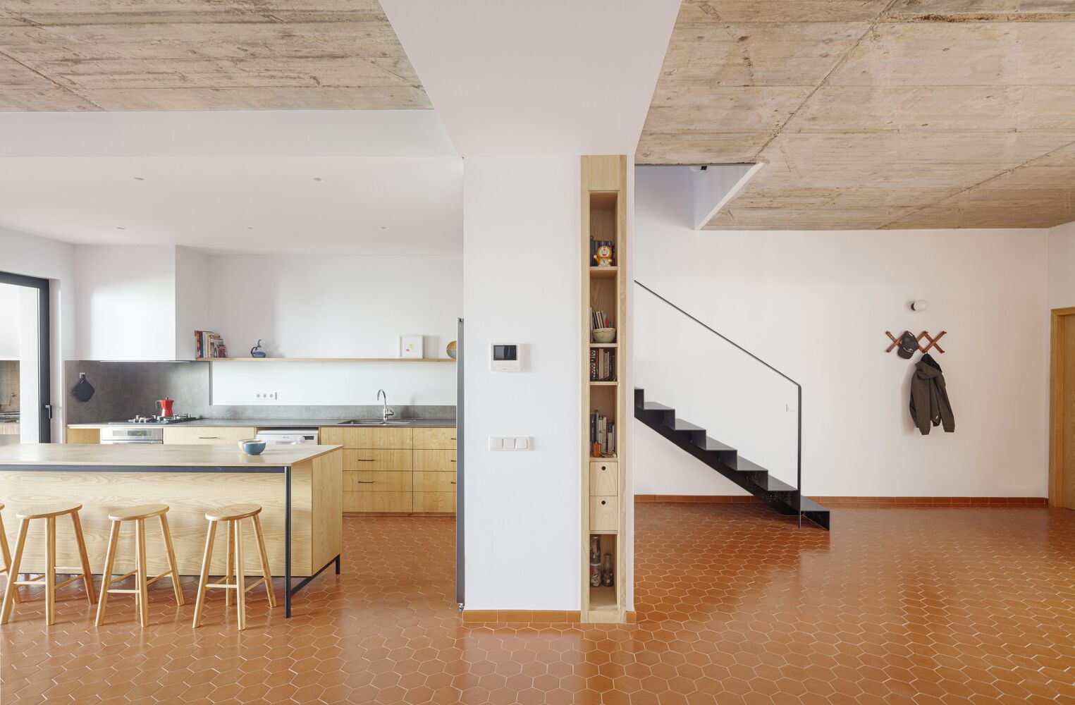 ไอเดียแต่งบ้านทาวน์โฮมหลังนี้ อยู่ที่ประเทศสเปน ออกแบบโดยสถาปนิก Estudi E.Torres Pujol หากมองจากภายนอกตัวบ้านจะค่อนข้างทึบ เพื่อให้ความเป็นส่วนตัวกับเจ้าของบ้าน แต่เมื่อผ่านประตูเข้าไปจะพบว่าภายในมีพื้นที่ใช้สอยมากมาย ซึ่งถูกออกแบบให้ตัวบ้านมีความโปร่งสบาย และความพิเศษของบ้านหลังนี้คือการปูด้วยกระเบื้องดินเผาหกเหลี่ยม ที่จัดว่าเป็นสถาปัตยกรรมยอดนิยมของเกาะในทะเลเมดิเตอร์เรเนียนเลยทีเดียว
