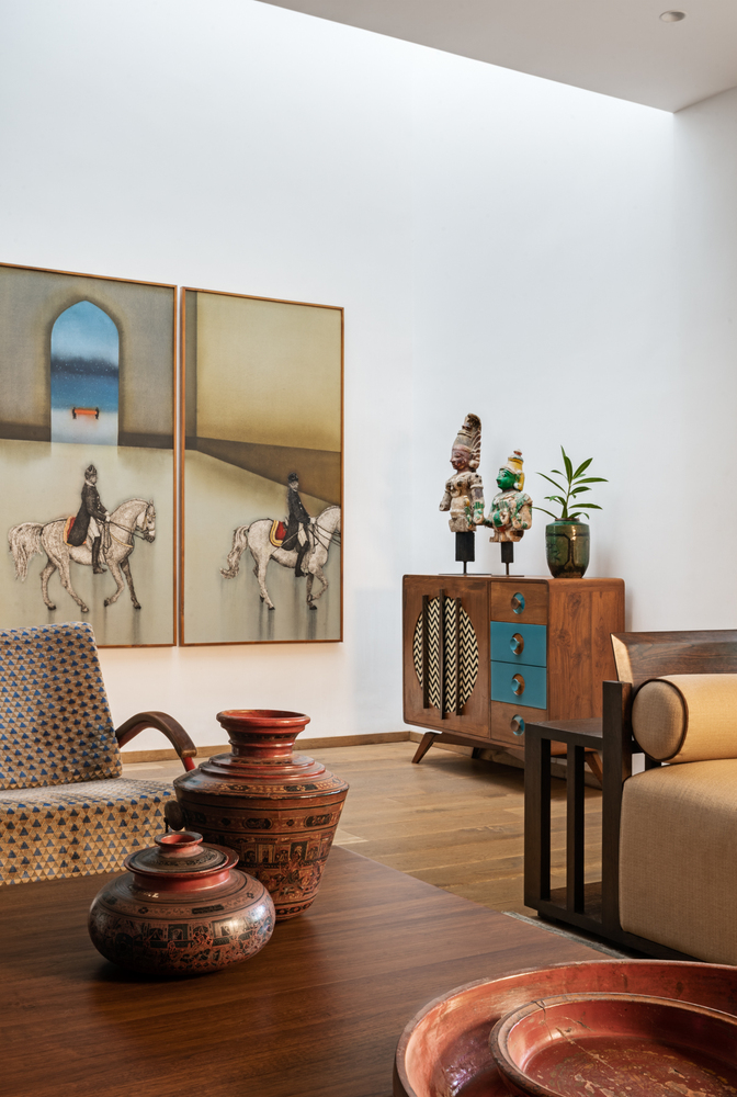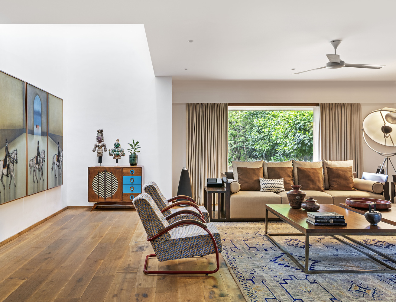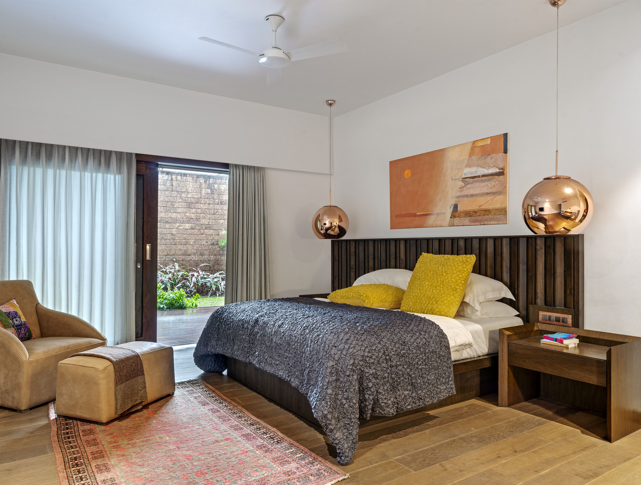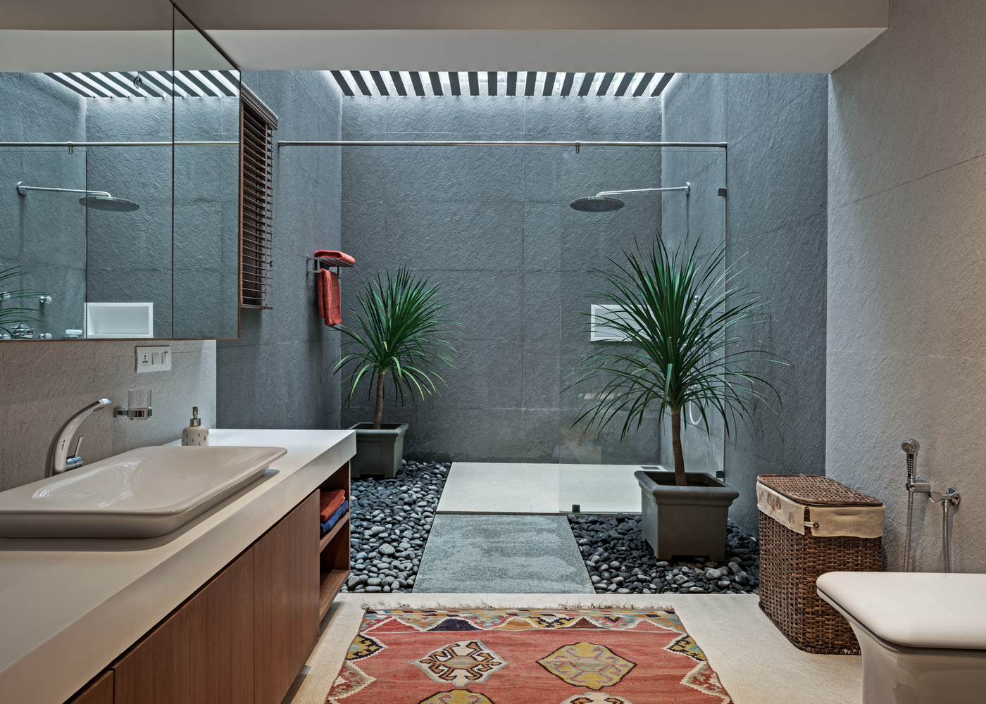 ไอเดียแต่งบ้านหลังนี้ เป็นผลงานจาก Khosla Associates ตั้งอยู่ที่ประเทศอินเดีย ซึ่งเป็นการออกแบบโดยการใช้น้ำ และหินทรายสีเหลืองอย่าง Jaisalmer ตกแต่งเป็นองค์ประกอบหัวใจหลักของบ้าน ทั้งนี้ตัวบ้านตั้งอยู่ในเขตพื้นที่ร้อนชื้น จึงได้มีการออกแบบตัวบ้านให้สอดคล้องกับสภาพภูมิอากาศได้อย่างดีเยี่ยม และลงตัวในทุกฤดู