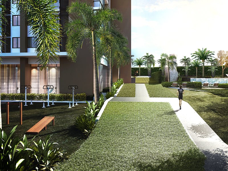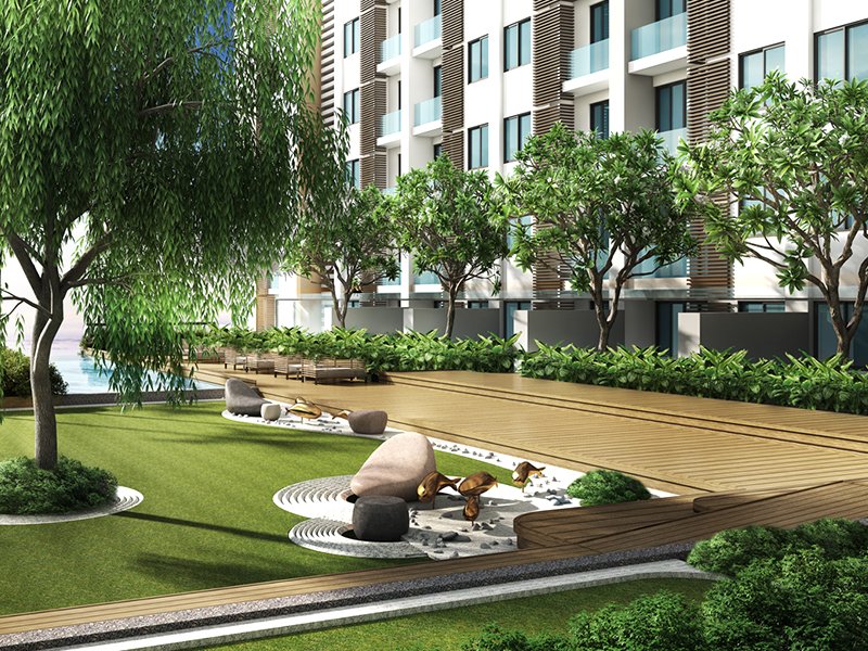 ลานโล่งอาบแดดพร้อมร่มเงา