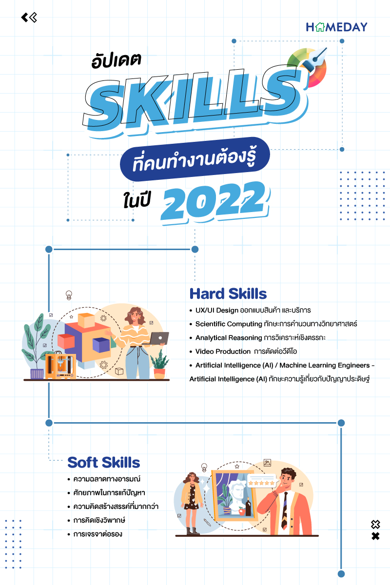 จากการสำรวจความคิดเห็นของบริษัท และนายจ้างในปี 2021 พบว่า พนักงานที่พวกเขาจ้างอยู่ประมาณ กว่า 80% ขาดคุณสมบัติหลายอย่างที่ต้องการ ซึ่งสิ่งที่บริษัทตอนนี้กำลังต้องการมากที่สุดก็คือ ทักษะใหม่ๆนั่นเองค่ะ เพระาฉะนั้นสิ่งที่นักศึกษาจบใหม่ และคนทำงานต้องเรียนรู้ในตอนนี้คือ การโฟกัสไปที่ ‘Hard Skills’ และ ‘Soft Skills’ ซึ่งเป็นที่ต้องการในอนาคต ตามไปดูกันดีกว่า ว่าทักษะใหม่ๆ ที่คนทำงานต้องรู้ในปี 2022 มีอะไรบ้างค่ะ