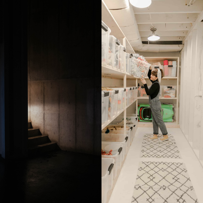 นอกจากจะไม่มีหน้าต่างแล้ว ห้องใต้ดินส่วนใหญ่ มักจะมีทางเข้า-ทางออกเพียงแค่ 1 ทางเท่านั้น ซึ่งมันทำให้เรารู้สึกเหมือนติดกับ ไร้ทางสู้ ไร้ทางออก อีกทั้งยังมีหลังสยองขวัญ หนังไล่ล่า หนังฆาตกรรม และหนังความรุนแรงต่าง ๆ หลายเรื่อง ที่นำไปสู่ภาพจำของห้องใต้ดินที่น่ากลัว ทำให้เราไม่อยากลงไปที่ห้องใต้ดิน เพราะรู้สึกถึงความไม่ปลอดภัยนั่นเองค่ะ ดังนั้น แม้ว่าบ้านของเรา จะใช้พื้นที่ของห้องใต้ดินเป็นเพียงแค่ห้องเก็บของ แต่การสร้างบรรยากาศในพื้นที่จัดเก็บส่วนนี้ก็สำคัญค่ะ ด้วยการจัดเก็บของให้เป็นระเบียบเรียบร้อย หยิบสะดวก และมีแสงไฟส่องถึงในทุก ๆ ที่