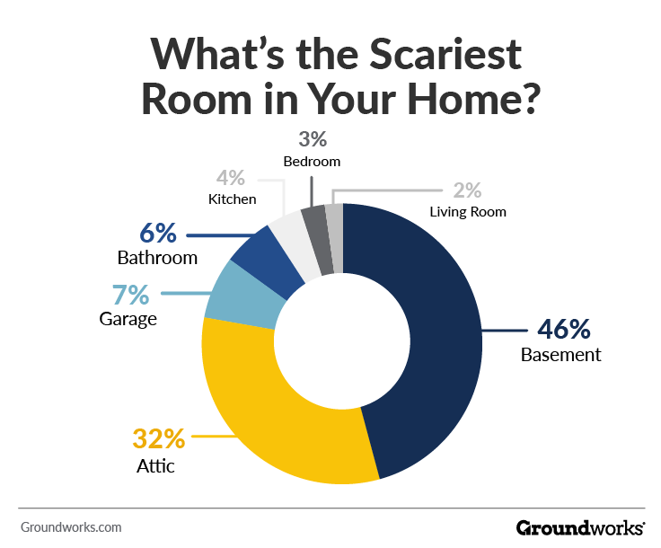 จากคำว่าที่ว่า “ห้องไหนที่น่ากลัวที่สุดในบ้านคุณ?” เกือบครึ่ง หรือ 46% ของเจ้าของบ้านที่ถูกสำรวจ ตอบว่า “ห้องใต้ดิน” นั่นเป็นเพราะห้องใต้ดินเป็นภาพจำฝังใจของคนเกือบทุกเชื้อชาติ เป็นการแสดงถึงภาพที่น่ากลัว ทั้งในหนังสือและภาพยนตร์แนวสยองขวัญ มีตั้งแต่การกักขังนักโทษไปจนถึงเรื่องลี้ลับในตอนกลางคืน แต่ต่อให้ผู้คนจะไม่ได้อินกับหนังสยองขวัญ ก็พอจะมีเหตุผลที่ทำให้เข้าใจถึงสาเหตุการกลัวห้องใต้ดินได้ในแง่มุมอื่น อย่างเช่นพวกงู หนู หยากไย่ แมงมุม และอื่น ๆ เพราะส่วนใหญ่มักจะทำเป็นพื้นที่เก็บของ หรือเป็นห้องที่คนมักไม่ค่อยได้เข้าไปใช้งานบ่อย ๆ ห้องใต้ดินจึงเป็นสถานที่ที่น่ากลัว ที่จะไปคนเดียว และห้องที่ได้รับการโหวตรองลงมาเป็นอันดับ 2 ก็คือ “ห้องใต้หลังคา” อย่างไม่ต้องสงสัย เลือกโดย 32% ของผู้ตอบแบบสำรวจ ซึ่งถือว่าเป็นคะแนนที่มากเลยทีเดียวค่ะ