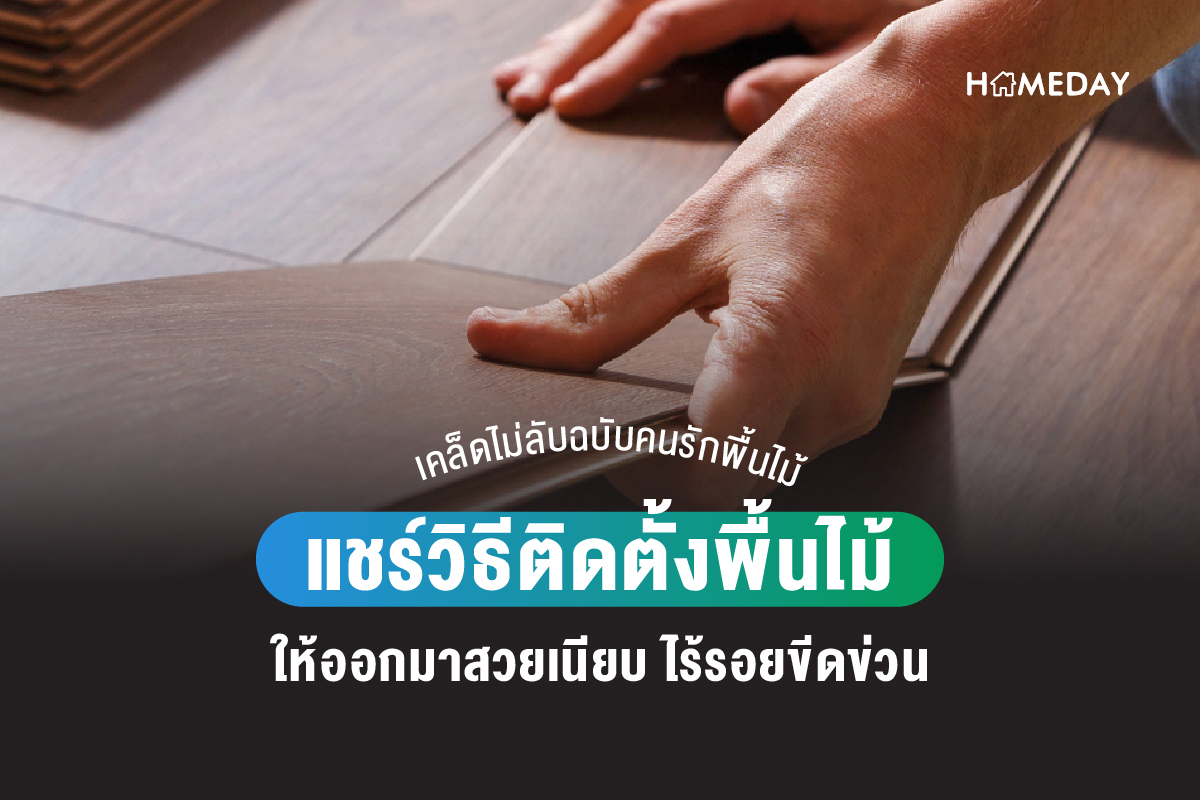 หากโจทย์ในการสร้างบ้าน คือ การมีบ้านที่น่าอยู่ ปลอดโปร่ง เย็นสบาย การเลือกใช้วัสดุตกแต่งบ้านด้วย ‘พื้นไม้’ คงตอบโจทย์ได้ดีที่สุด เพราะไม้เป็นตัวแทนของความเป็นธรรมชาติ มีความเรียบหรู คงทนและยังมีลวดลายให้เลือกหลายแบบ ไม่ว่าเราจะติดตั้งไว้ที่พื้นส่วนไหนของบ้าน มองไปแล้วก็ให้ความรู้สึกใกล้ชิดธรรมชาติ น่าอยู่ ทำให้บ้านของเรามีบรรยากาศที่ดีและโดดเด่นขึ้น หลายๆ คนที่กำลังมีแพลนสร้างบ้านและต้องการใกล้ชิดธรรมชาติจึงมีพื้นไม้ไว้เป็นตัวเลือกในใจ แต่การเลือกใช้พื้นไม้ก็ตามมาด้วยข้อกังวลหลายอย่าง ทั้งราคาค่าติดตั้งที่สูงหรือปัญหาที่จะตามมาหลังจากใช้งาน ไม่ว่าจะเป็นรอยขีดข่วน การรั่วซึม หรือความลื่นของพื้นจนทำให้เกิดอุบัติเหตุ วันนี้เราจึงนำทริกและวิธีการติดตั้งพื้นไม้ด้วยตนเองที่จะทำให้ความกังวลเหล่านี้หมดไปมาฝากกัน ไปดูเลยว่ามีวิธีอย่างไรบ้าง