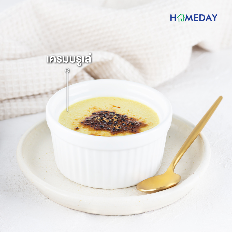 • ก่อนรับประทานอย่าลืมโรยหน้าด้วยน้ำตาลทรายและเบิร์นให้น้ำตาลเผาไหม้ ก็จะได้รสชาติเครมบรูเล่แสนอร่อยแล้วค่ะ