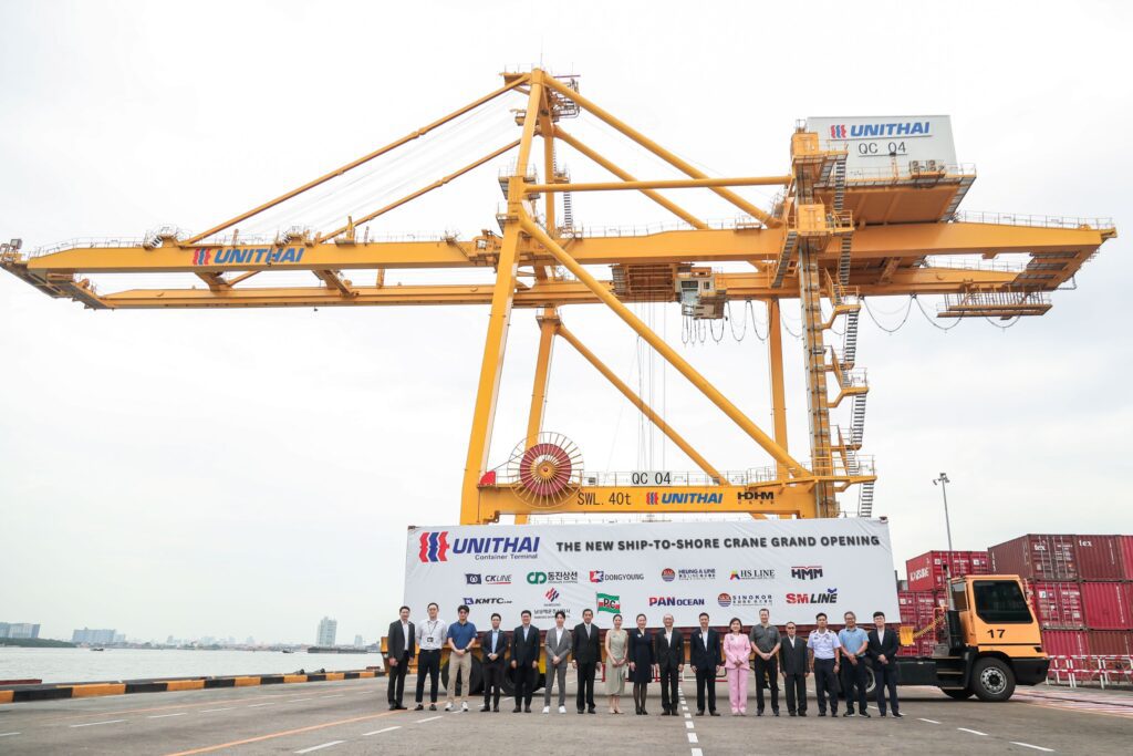 นายวศะ จันทร์แสงสุก ผู้ช่วยผู้จัดการทั่วไป ท่าเรือยูนิไทย (Unithai Container Terminal) กล่าวเสริมว่า “ปั้นจั่นยกตู้สินค้าหน้าท่าชุดใหม่นี้ มีขนาดใหญ่กว่าเดิม สามารถรองรับเรือขนส่งสินค้าด้วยระยะจับยกตู้ 14 แถว และเพิ่มประสิทธิภาพในการยกตู้สินค้าได้ถึง 5 ชั้น นอกจากนี้ ยังสามารถยกตู้สินค้าได้สูงสุดถึง 40 ตัน ปั้นจั่นยกตู้สินค้าหน้าท่าชุดใหม่นี้ ไม่เพียงแต่เพิ่มความรวดเร็วและความแม่นยำในการยกและเคลื่อนย้ายตู้สินค้า ยังสามารถช่วยเพิ่มประสิทธิภาพในการทำงานของเรือได้เป็นอย่างมาก ท่าเรือยูนิไทยยึดมั่นในการพัฒนาและปรับปรุงการให้บริการอย่างต่อเนื่อง เพื่อให้การขนส่งสินค้าเป็นไปอย่างมีประสิทธิภาพ และเป็นมิตรกับสิ่งแวดล้อม การพัฒนาในครั้งนี้ถือเป็นก้าวสำคัญในการยกระดับการให้บริการของท่าเรือ ยูนิไทย ที่จะช่วยให้สามารถรองรับความต้องการของลูกค้าได้ดียิ่งขึ้น”