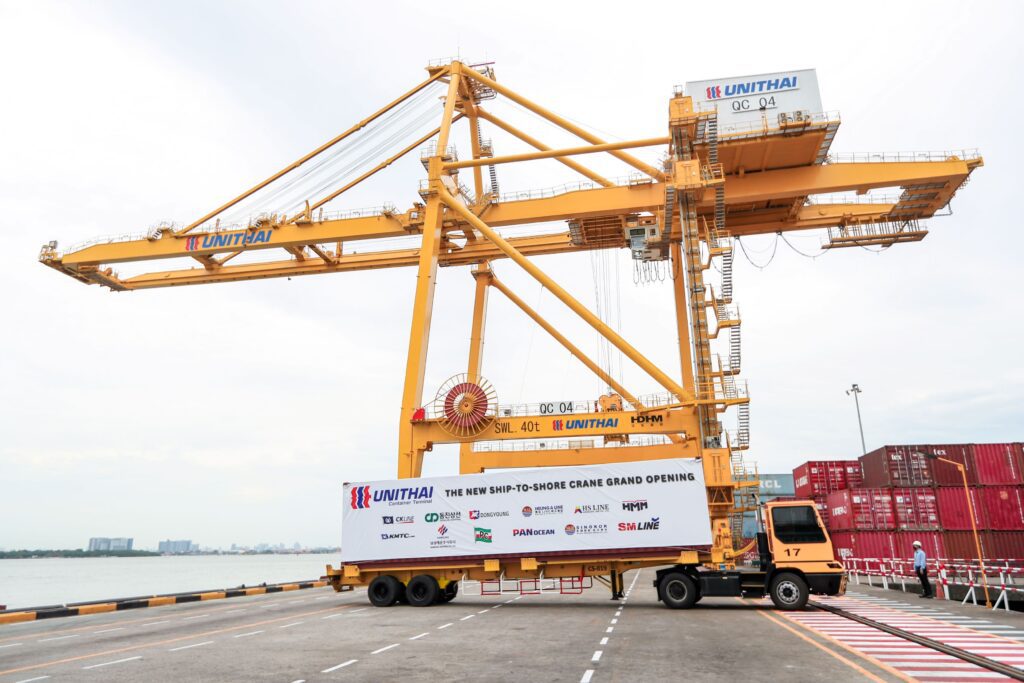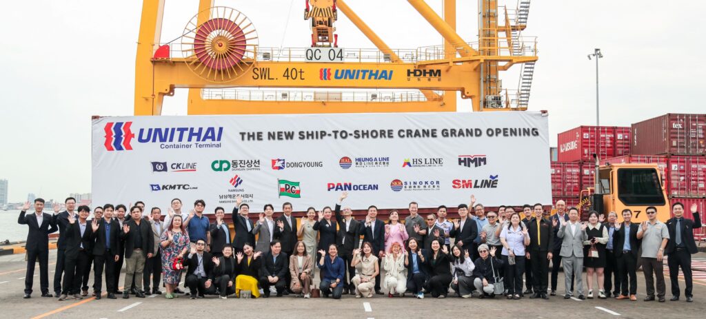 บริษัท ยูไนเต็ด ไทย ชิปปิ้ง จำกัด หรือ ท่าเรือยูนิไทย ได้รับมอบอุปกรณ์ปั้นจั่นพลังงานไฟฟ้ายกตู้สินค้าชุดใหม่หน้าท่า (New Ship-To-Shore Crane) จาก Wuxi HuaDong Heavy Machinery Co.,Ltd (HDHM) ซึ่งเป็นบริษัทที่มีชื่อเสียงในอุตสาหกรรมเครื่องจักรสำหรับท่าเรือ เชี่ยวชาญในการผลิตปั้นจั่นหลายประเภท พร้อมยกระดับมาตรฐานการให้บริการที่มีความรวดเร็วและแม่นยำในการยกและเคลื่อนย้ายตู้สินค้า เพิ่มประสิทธิภาพในการทำงานของท่าเรือ บริการขนส่ง ระบบโลจิสติกส์ และการจัดการคลังสินค้าได้อย่างเต็มประสิทธิภาพ เดินหน้าผู้นำอุตสาหกรรมขนส่งและโลจิสติกส์
