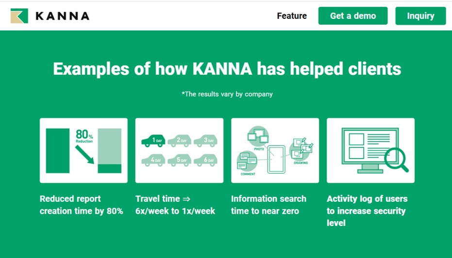 สำหรับประเทศไทย นายนากาฮามากล่าวว่า “งานภาคสนามหรือที่เรียกว่า “งานออนไซต์” ไม่ว่าจะเป็นอุตสาหกรรมยานยนต์ ซึ่งเป็นอุตสาหกรรมหลักของประเทศไทย อุตสาหกรรมการผลิต อสังหาริมทรัพย์ โรงแรม การขนส่ง และคลังสินค้าต่าง ๆ ที่ต้องการใช้เทคโนโลยีช่วยในการทำงานที่แข่งกับเวลาและลดต้นทุนสามารถเลือกใช้แอป “KANNA” ในการช่วยบริหารงานได้ สามารถศึกษาจากคลิปสาธิตการใช้งานได้ที่ https://youtu.be/RQ-Ap9N7jiQ และผู้ที่สนใจทดลองใช้ด้วยตนเอง ลงทะเบียนฟรีได้ที่ https://lp.kanna4u.com/th”