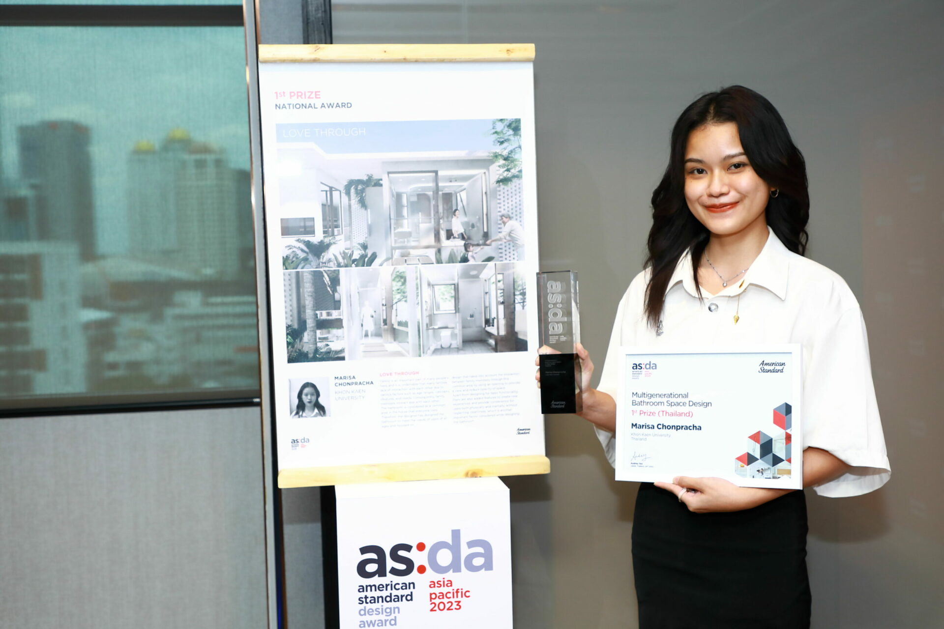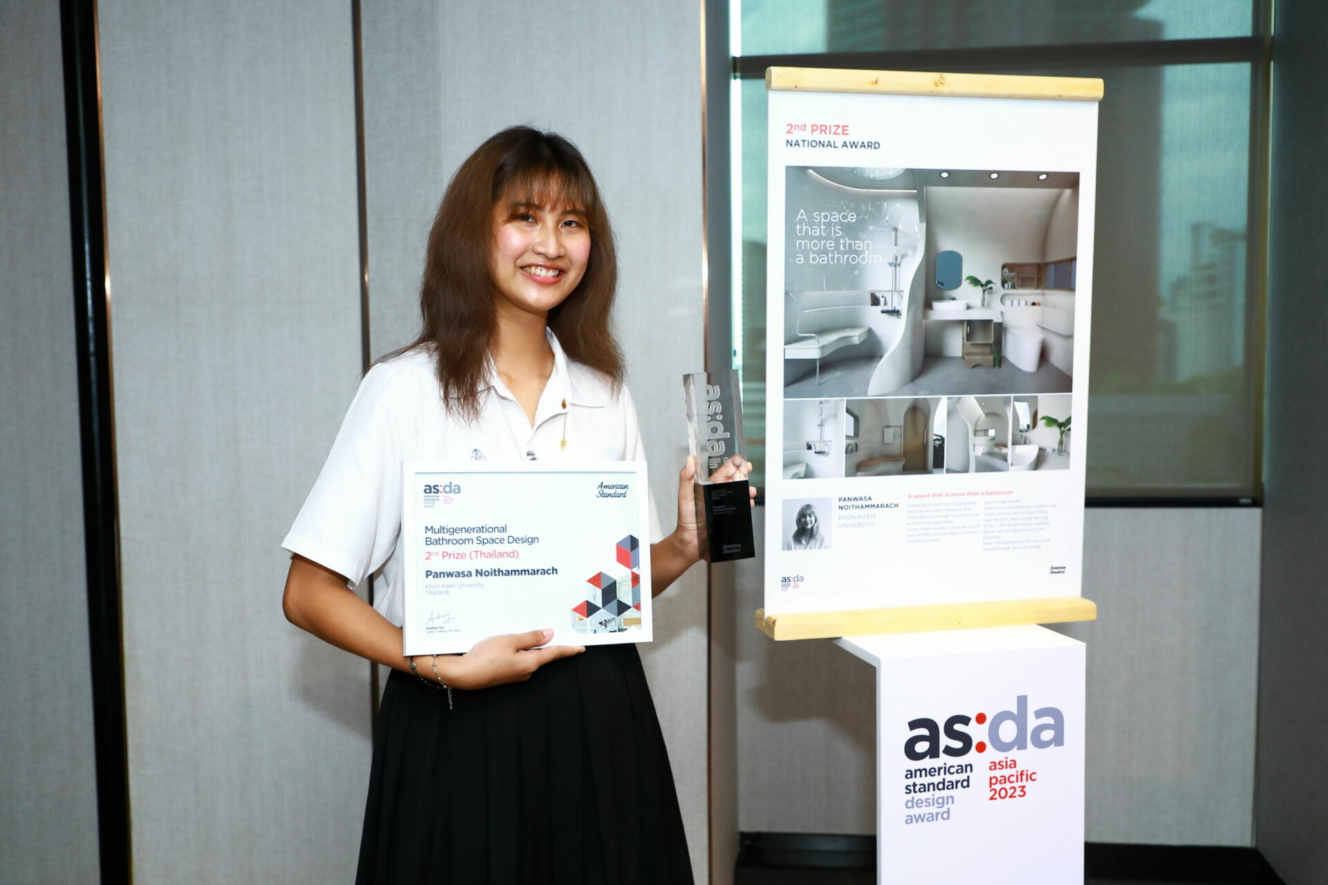 นักศึกษาผู้คว้ารางวัลชนะเลิศระดับภูมิภาคเอเชียแปซิฟิก (Asia-Pacific Award Grand Prize Winner) ในปีนี้ ได้แก่ Sin Ponleu นักศึกษาชาวกัมพูชาจากมหาวิทยาลัยเทียนจิน (Tianjin University) โดยนำเสนอผลงานการออกแบบห้องน้ำชื่อว่า “One Space, One Love” ที่มุ่งเน้นการตอบสนองความต้องการการใช้งานของสมาชิกทุกคนในบ้าน ได้แก่ ผู้สูงอายุ ผู้ใหญ่ และเด็ก ๆ พื้นที่ของห้องน้ำได้รับการจัดสรรออกเป็น 4 ส่วนเพื่อให้ทุกคนสามารถใช้ห้องน้ำได้พร้อม ๆ กัน ไม่ว่าจะเป็นพื้นที่ส่วนอาบน้ำของเด็ก ๆ หรือผู้ใหญ่ พื้นที่ทำความสะอาดเสื้อผ้า หรือแม้กระทั่งสปาส่วนตัว “กว่า 140 ปีแล้วที่อเมริกันสแตนดาร์ดได้ยกระดับมาตรฐานอย่างต่อเนื่องในการนำเสนอโซลูชันห้องน้ำที่ผสมผสานการ ออกแบบอย่างมีจุดมุ่งหมายควบคู่ไปกับเทคโนโลยีที่ก้าวล้ำนำหน้า ด้วยความเชี่ยวชาญเชิงลึกในอุตสาหกรรมนี้และการออกแบบของเรา เรามีความยินดีเป็นอย่างยิ่งที่ได้ร่วมมือกับสถาปนิกและนักออกแบบชั้นนำในการจัดการแข่งขัน ASDA 2023 อเมริกันสแตนดาร์ดได้รับความไว้วางใจจากรุ่นสู่รุ่นด้วยการเป็นผลิตภัณฑ์ที่มีการพัฒนาอย่างไม่หยุดยั้งและเชื่อถือได้ และธีม ASDA ของปีนี้ต้องการสร้างแรงบันดาลใจให้นักศึกษาสาขาการออกแบบได้สร้างสรรค์พื้นที่ภายในห้องน้ำที่น่าใช้งานซึ่งคนทุก เจเนอเรชันในบ้านจะชื่นชอบ ในขณะเดียวกันก็ได้แข่งขันประชันไอเดียกับเพื่อน ๆ ในภูมิภาคเอเชียแปซิฟิกอีกด้วย” ออดรีย์ โหย่ว ลีดเดอร์ ประเทศไทย และกลุ่มประเทศอินโดไชน่า กลุ่มบริษัท ลิกซิล, ธุรกิจเทคโนโลยีการใช้น้ำ เอเชียแปซิฟิก (LWT APAC) กล่าว