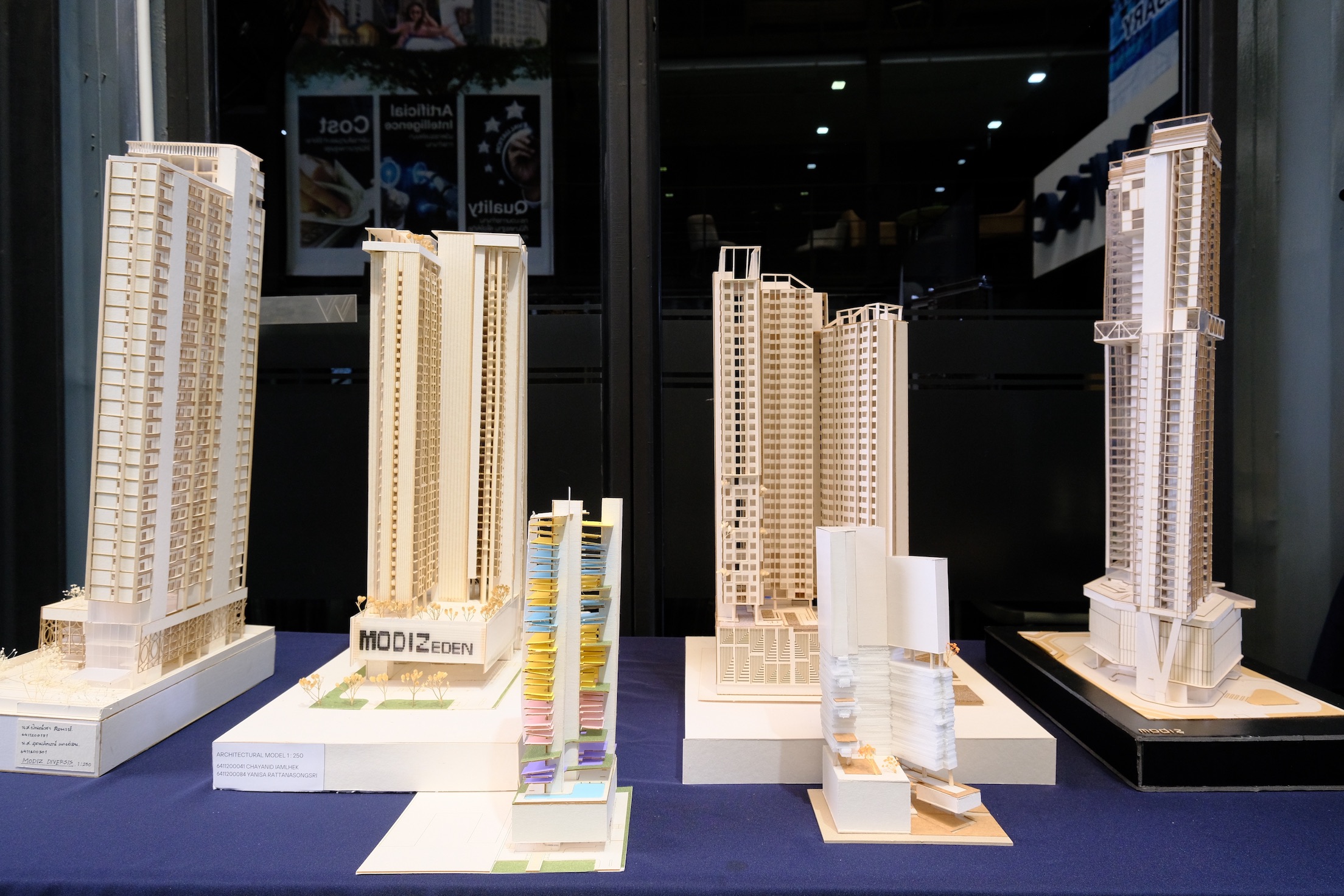 ทีม Mobiz Orbit โดย น.ส.ฉัตรลดา นากดี และ น.ส.เจนจิรา สินอภิรมย์สราญ นิสิตชั้นปีที่ 4 สาขาสถาปัตยกรรมศาสตร์ คว้าชัยชนะในการประกวดออกแบบอาคารที่พักอาศัย พร้อมรับรางวัล 25,000 บาท ด้วยแนวคิด “Orbit” หรือวงโคจร ผลงานโดดเด่นด้วยการออกแบบอาคารที่บิดตัวรับกับบริบทโดยรอบอย่างลงตัว ช่วยลดการโดนแสงแดดโดยตรงและทำให้ไม่มีอาคารสูงมาบดบังทัศนียภาพ พร้อมสร้างสรรค์พื้นที่ส่วนกลางให้เป็นศูนย์กลางการใช้ชีวิตร่วมกันของคนทุกเจเนอเรชัน ทั้งยังผสานความรู้ด้านโครงสร้าง การใช้ Façade และระบบอาคารทันสมัย ให้สอดคล้องกับแนวคิด WISECOLOGY ทั้ง 3 ด้าน ได้แก่ Environment Friendly, Smart Living และ Sustainable Life โดยทีมเผยว่า “การได้ร่วมโครงการนี้ถือเป็นประสบการณ์ที่มีค่ามาก ๆ ในชีวิตของพวกเรา โจทย์นี้ถือว่าท้าทาย แต่เราตั้งใจสร้างสรรค์คอนโดที่ไม่ใช่แค่อาคารสูงทั่วไป แต่เป็นงานออกแบบที่มีเอกลักษณ์และมีฟังก์ชันตอบโจทย์ชีวิตที่ลงตัวของทุกคนในคอนโด ตามโจทย์ที่รับจากทางแอสเซทไวส์”