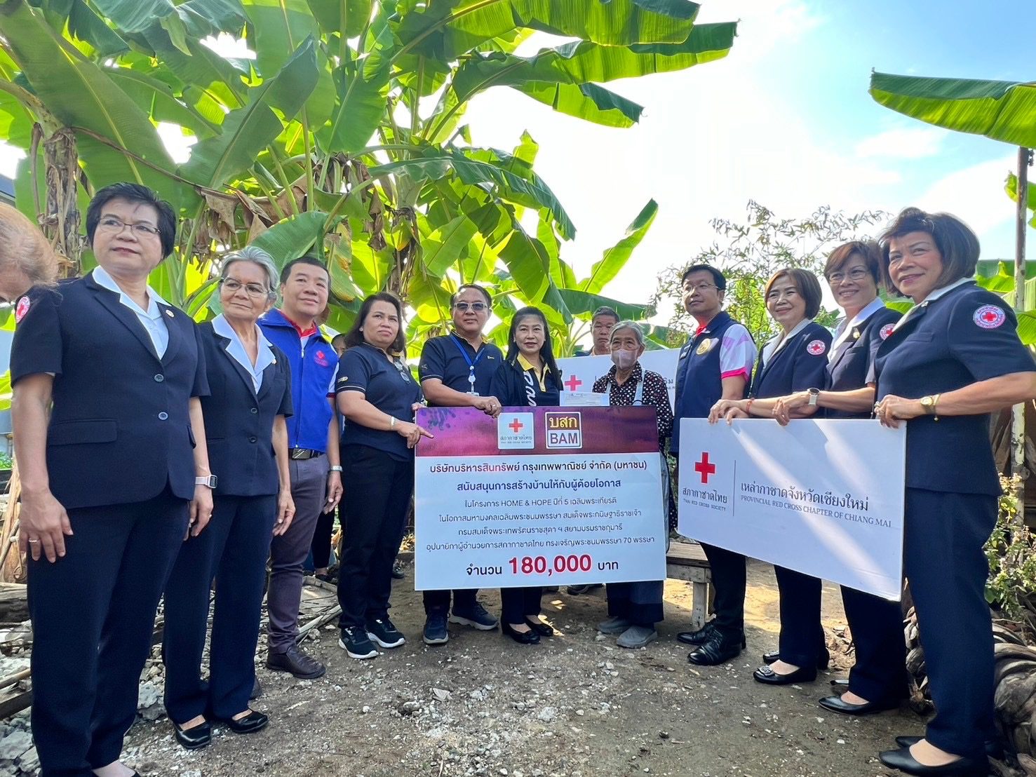 นางมณฑริกา ฉัตรมงคลพันธ์ ผู้อำนวยการฝ่ายพัฒนาสินทรัพย์ภาคเหนือตอนบน นายวิเชียร เต็งจารึกชัย ผู้จัดการสำนักงานเชียงใหม่ (แก้วนวรัฐ) นางไพรินทร์ เรืองธรรม ผู้จัดการสำนักงานเชียงใหม่ (เจริญเมือง) พร้อมพนักงาน บริษัทบริหารสินทรัพย์ กรุงเทพพาณิชย์ จำกัด (มหาชน) หรือ BAM มอบเงินจำนวน 180,000 บาท ให้กับเหล่ากาชาดจังหวัดเชียงใหม่ โดยมี คณะกรรมการเหล่ากาชาดจังหวัดเชียงใหม่ พร้อมด้วย นายวัชระ เทพกัน นายอำเภอแม่ริมและนายกกิ่งกาชาดอำเภอแม่ริม สมาชิกกิ่งกาชาดอำเภอแม่ริม เป็นตัวแทนรับมอบเพื่อนำไปสร้างบ้าน โครงการ Home & Hope “ การพัฒนาที่อยู่อาศัยเฉลิมพระเกียรติ ในโอกาสมหามงคล เฉลิมพระชนมพรรษา สมเด็จพระกนิษฐาธิราชเจ้า กรมสมเด็จพระเทพรัตนราชสุดาฯ สยามบรมราชกุมารี อุปนายิกาผู้อำนวยการสภากาชาดไทย ทรงเจริญพระชนมพรรษา 70 พรรษา” ให้กับ นางพิมลพรรณ ดีวิเศษ อายุ 80 ปี อาศัยอยู่ ณ ตำบลริมใต้ อำเภอแม่ริม จังหวัดเชียงใหม่