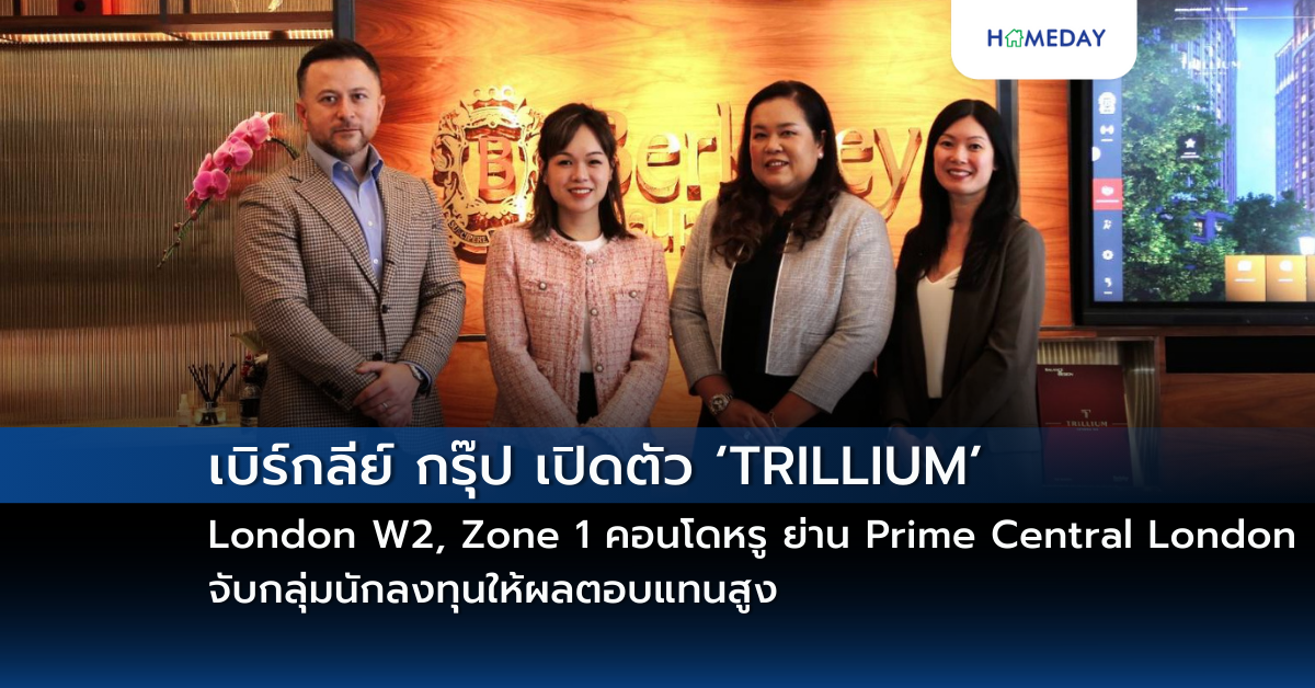 บริษัท เบิร์กลีย์ กรุ๊ป โฮลดิ้งส์ (Berkeley Group Holdings plc) ผู้พัฒนาอสังหาริมทรัพย์และผู้สร้างบ้านชั้นนำจากประเทศอังกฤษประกาศเปิดตัวโครงการใหม่ “TRILLIUM” London W2, Zone 1 บนทำเลศักยภาพ ย่าน Prime Central London เจาะกลุ่มนักลงทุน ราคาเริ่ม 28.6 ล้านบาท มั่นใจตลาดลอนดอนยังน่าลงทุน และเป็นโอกาสระยะยาวสำหรับนักลงทุน