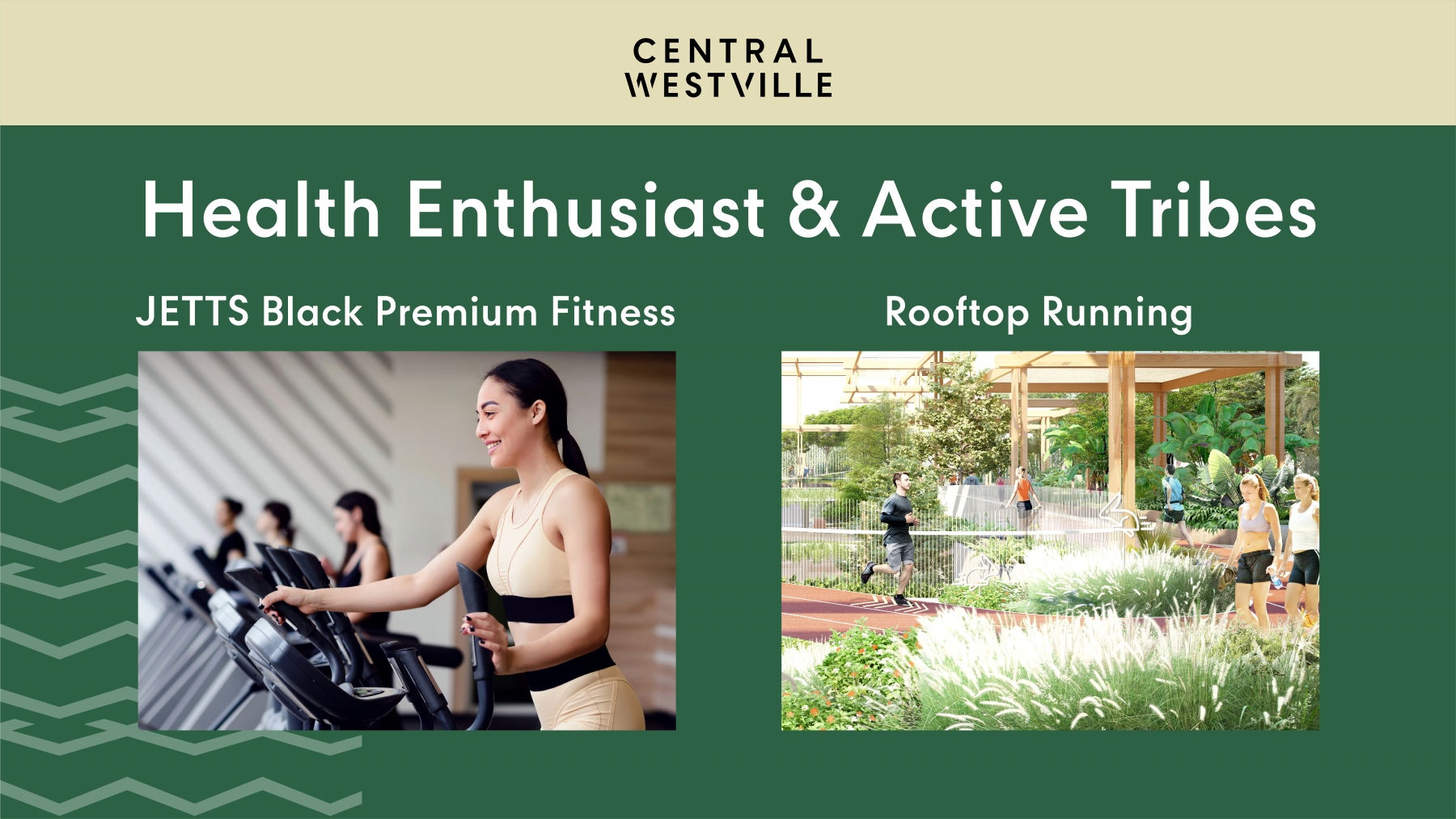 2. Health Enthusiast & Active Tribes สำหรับคนแอคทีฟและใส่ใจสุขภาพ ยกระดับความฟิตกับJETTS Black – Premium Fitness แห่งเดียวในย่าน ที่เปิดตั้งแต่หกโมงเช้าถึงเที่ยงคืน, Rooftop Running มีลู่วิ่ง 400 ม. ในบรรยากาศสวนดาดฟ้าของเวสต์วิลล์ และพบแบรนด์ Sports Fashion ครบครัน อาทิ Adidas, Puma, Vans, Skechers, Le Coq Sporsac